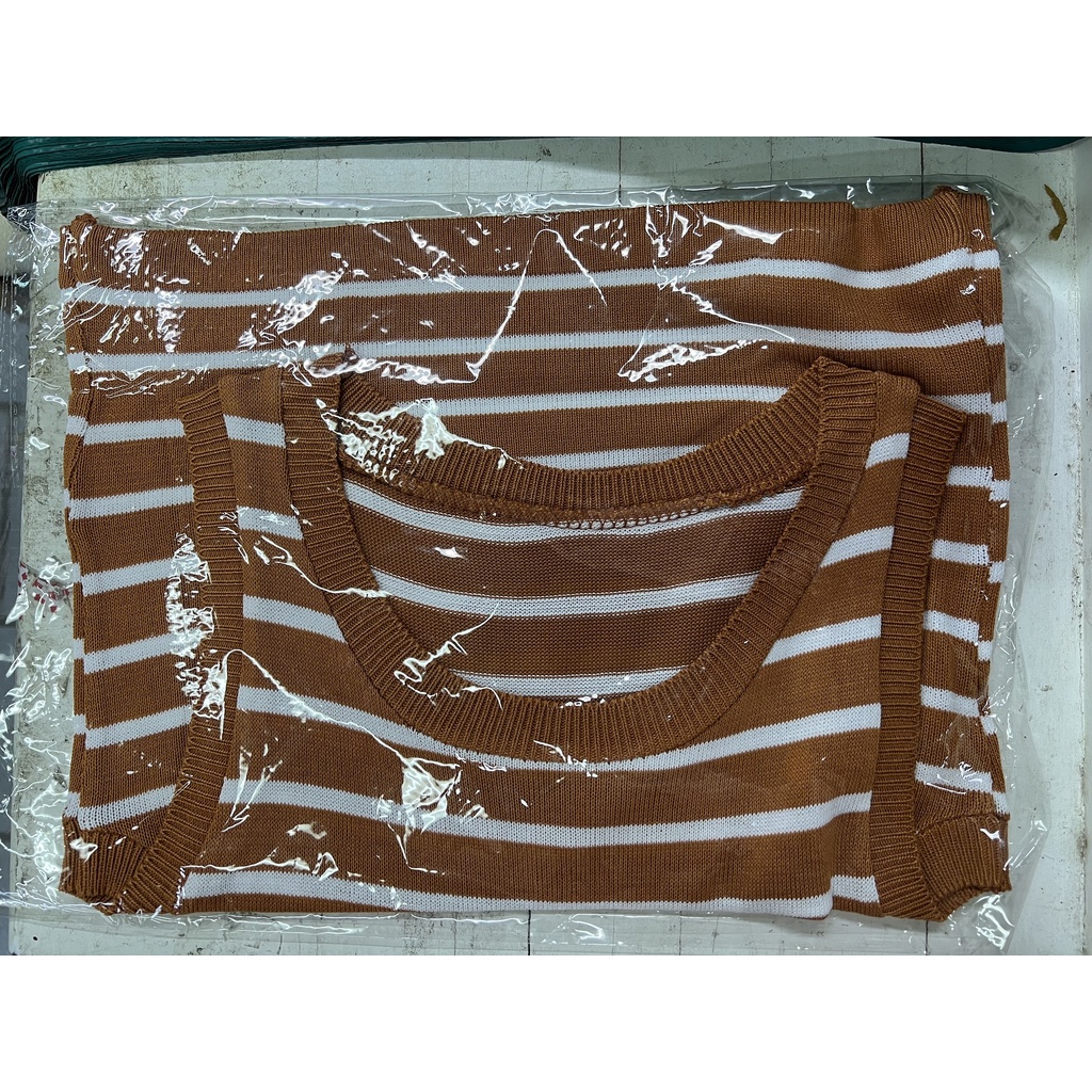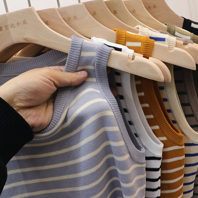 🔥 เสื้อไหมพรม 🔥 คอกลม ลายทาง เสื้อแขนกุด ผ้าเรยอนถัก เข้ารูปเซ็กซี่ เหมาะกับฤดูร้อน ใช้งานกลางแจ้ง