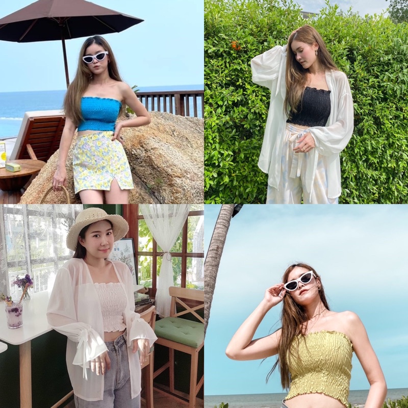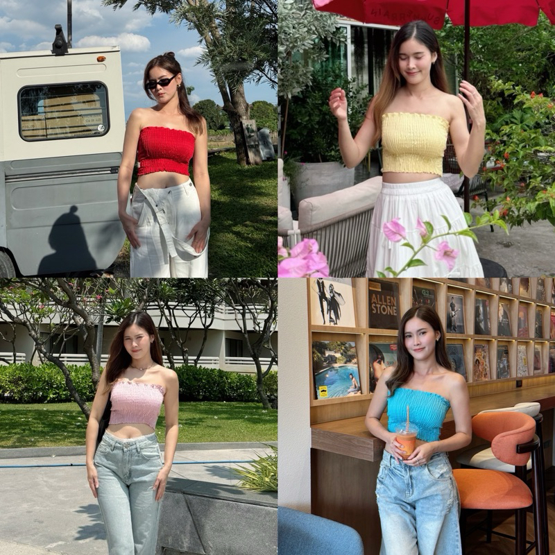 PYCK CLOTHING 🌼 สีใหม่มาเพิ่ม 💕เกาะอกสม็อค 12 สี พร้อมส่ง🫶🏼 เกาะอกสายฝอ