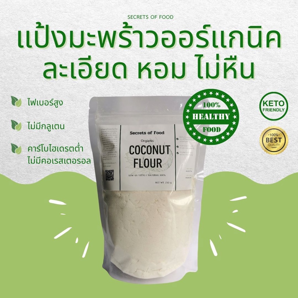 แป้งมะพร้าวออแกนิค Organic Coconut Flour (USDA) แป้งคีโต KETO แป้งทำขนม Low GI เนื้อเนียนละเอียด ล็อตใหม่ หอมมัน ไม่หืน
