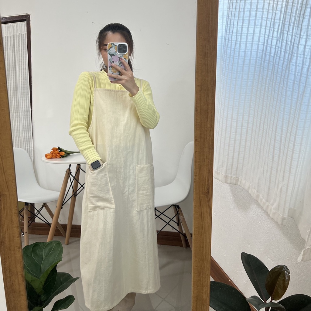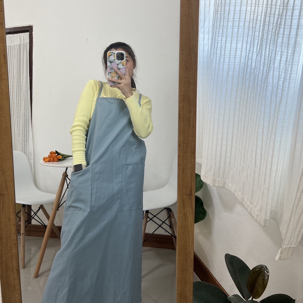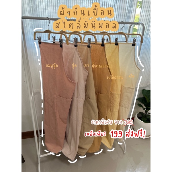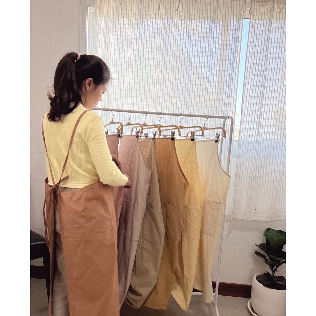 ผ้ากันเปื้อนมินิมอลทำจากผ้าฝ้าย สีสวย