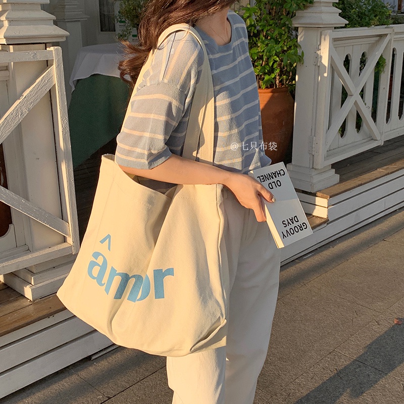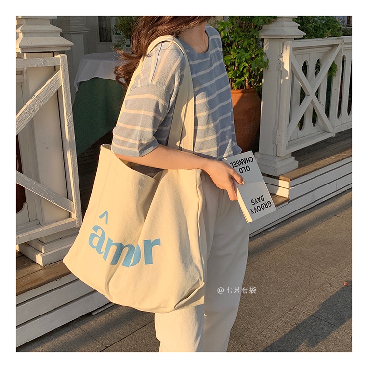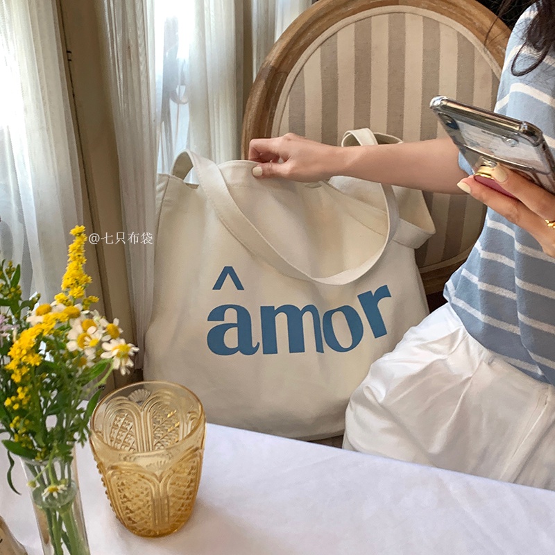 กระเป๋าผ้ามินิมอล amor ใบใหญ่ เนื้อผ้าหนา ขนาด ยาว43*33CM