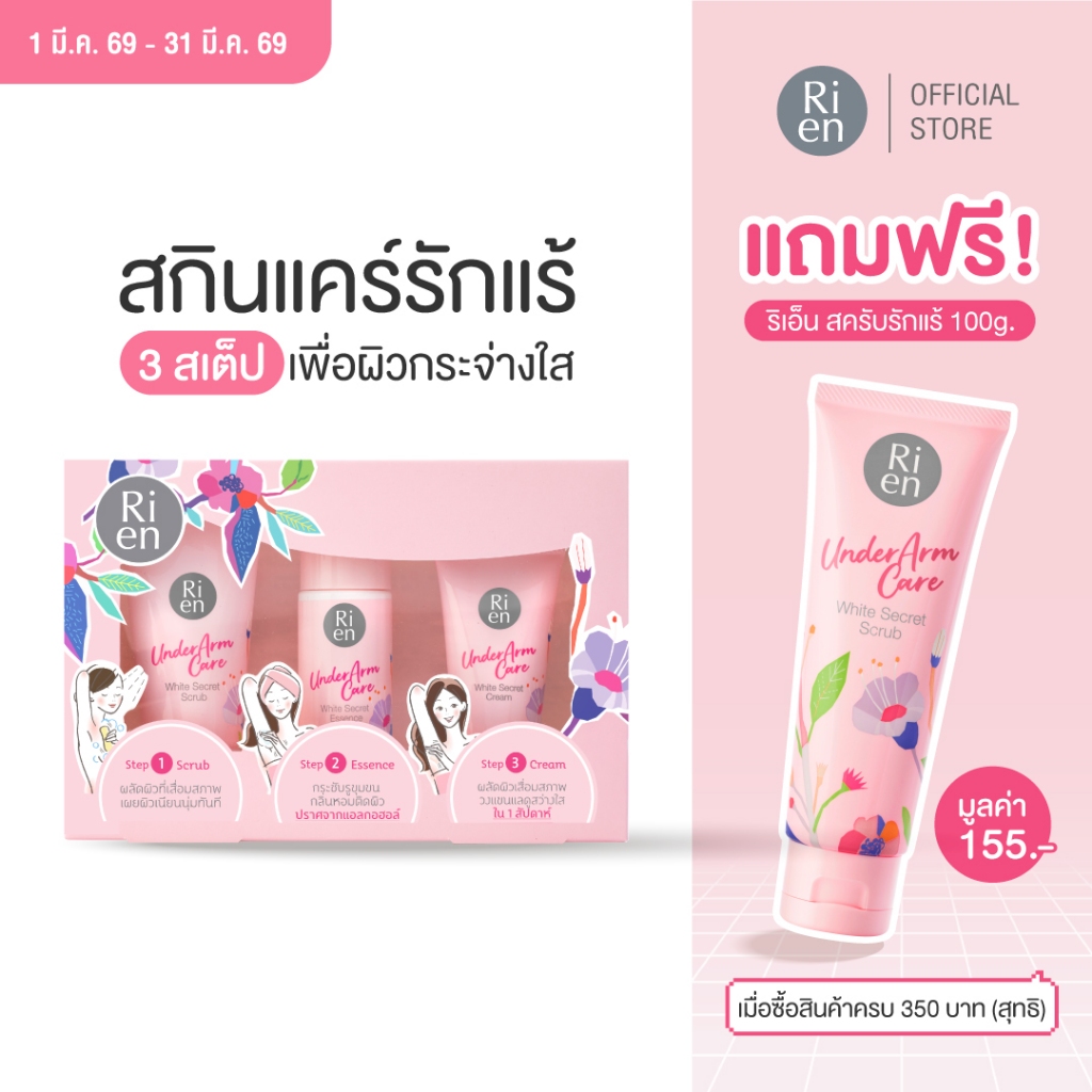 ริเอ็น เซ็ทดูแลรักแร้ ขนาดทดลอง สครับ เอสเซ้นส์ ครีม Ri en Underarm Care White Secret Collection Set
