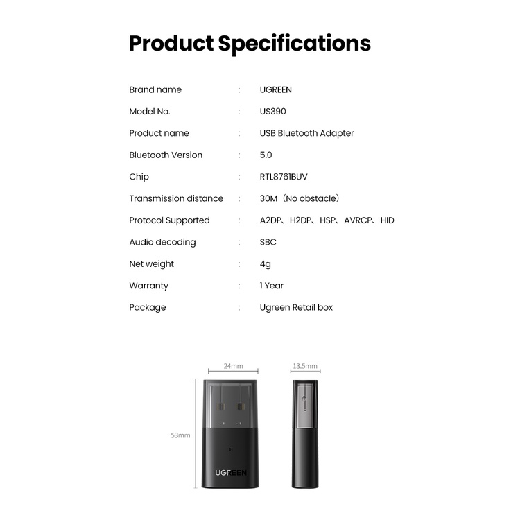 [ขายดี] UGREEN เครื่องรับส่งสัญญาณเสียงบลูทูธไร้สาย USB 5.0 4.0 สําหรับ PC Windows 10 8.1 7