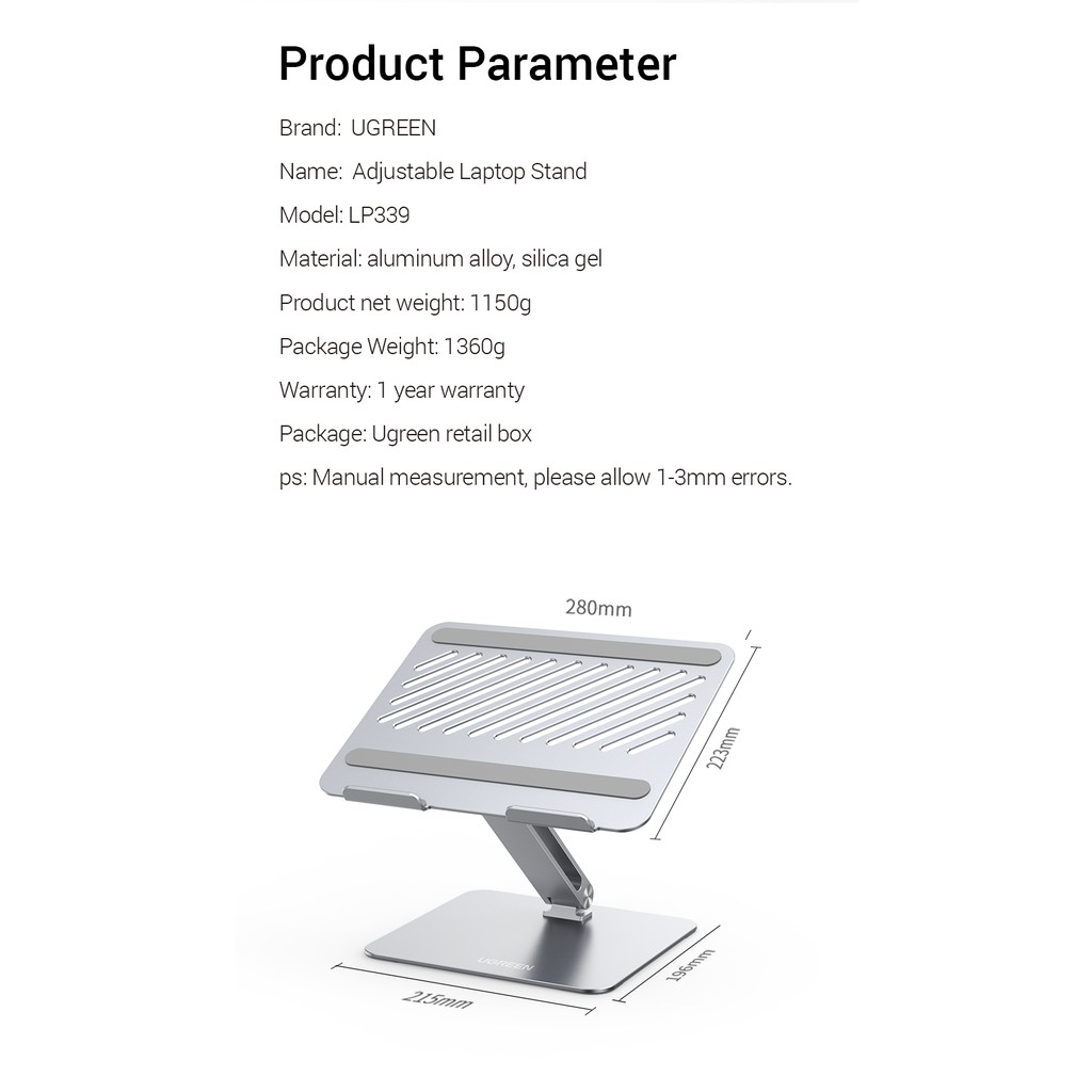 Ugreen ขาตั้งแล็ปท็อป แนวตั้ง พับได้ 180° ขาตั้ง ปรับได้ 17.3 นิ้ว สําหรับ PC Macbook Air Pro