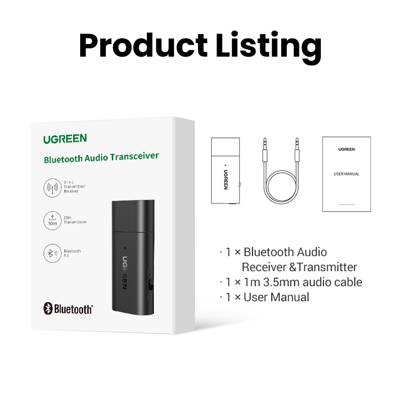 UGREEN 2 In 1 บลูทูธ 5.1 ตัวส่งสัญญาณเสียงและตัวรับสัญญาณบลูทูธ รองรับ SBC