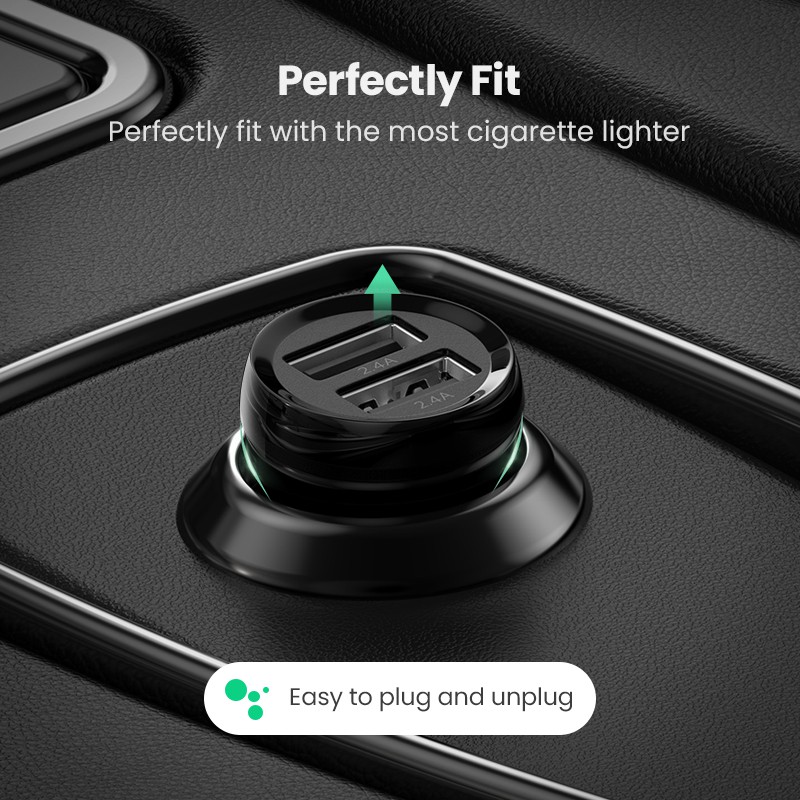 UGREEN ที่ชาร์จ USB แบบคู่ แรงดันไฟ 4.8A ขนาดเล็ก สำหรับรถยนต์
