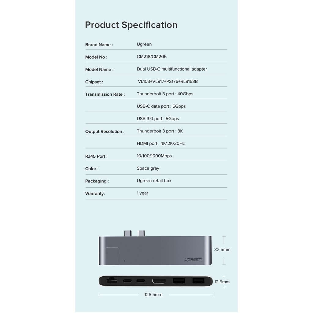 UGREEN ฮับ USB Type C แบบคู่ แปลง USB-C เป็น Multi USB 3.0 HDMI สำหรับ compatible compatible for Macbook Pro Air Thunderbolt 3