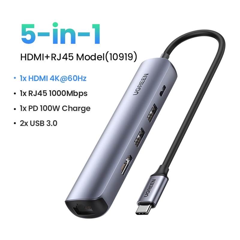 UGREEN USB C Hub Type C Dock with 4K@30Hz HDMI 4 USB 3.0 Ports Multiport Adapter Compatible for compatible compatible for Macbook Pro compatible compatible for IPad Pro XPS Pixelbook and More