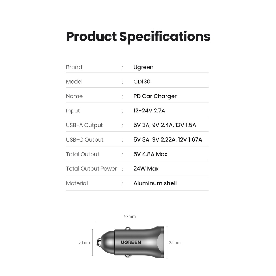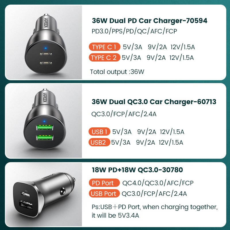 Ugreen ที่ชาร์จเร็ว 4.0 3.0 QC PD USB ในรถยนต์ สําหรับ iPhone 14/14 Plus/14 Pro/Pro Max