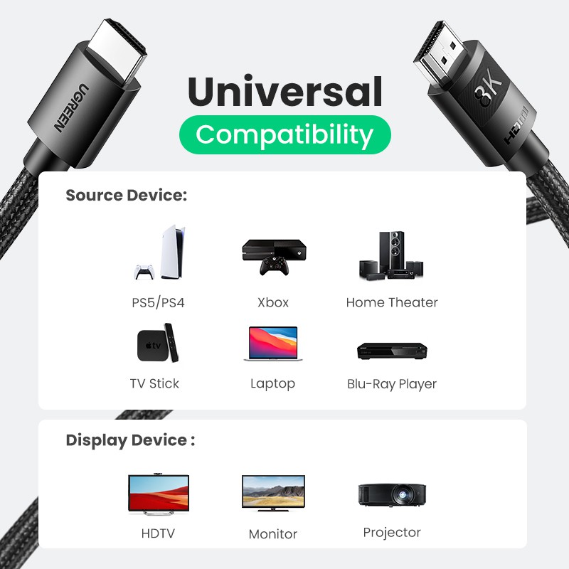 UGREEN ตัวแยกสายเคเบิ้ล Hdmi 2.1 8K 60Hz 4K 120Hz Untuk Xiaomi Mi Box Ps5 48Gbps อุปกรณ์เสริมโทรศัพท์มือถือ