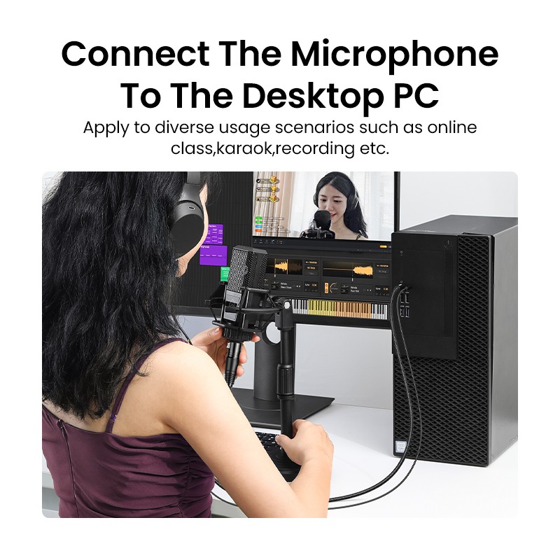UGREEN XLR เป็น 3.5 มม. ไมโครโฟนเสียง HiFi สายเคเบิล XLR ตัวเมีย ไปแจ็ค Aux ไมค์สาย สําหรับกล้อง DSLR กล้องวิดีโอ