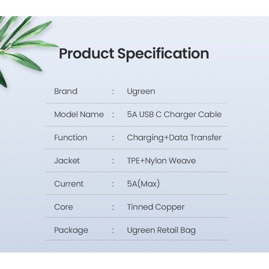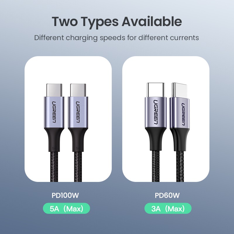 UGREEN Fast Charging 100W สาย 20V 5A ตรง 90 องศาไนลอน Brawed USB C ถึง USB C สําหรับ iPhone 17 PRO Max Macbook Pro Samsung Google Pixel สวิทช์