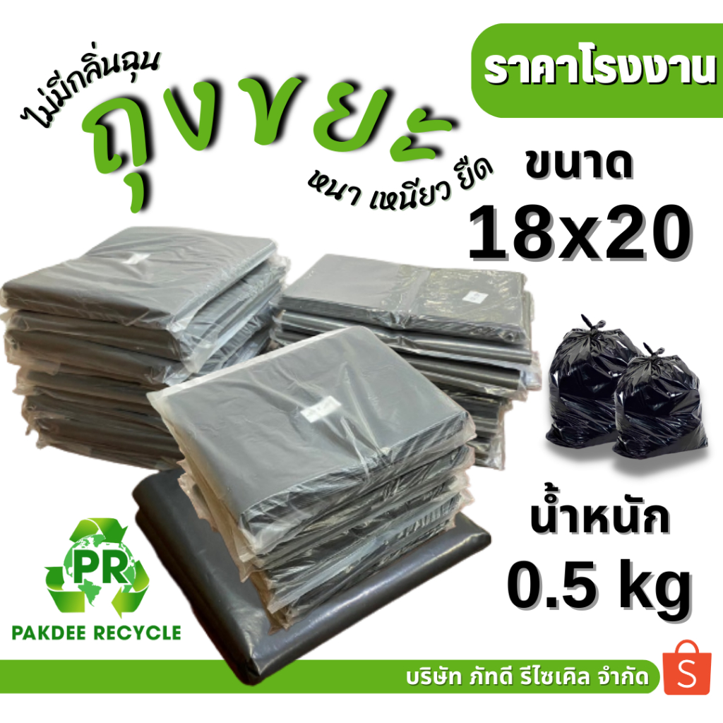 ถุงขยะดำ เกรดดี 18x20 แพ็ค 0.5 กก. ความหนา 0.10 มม. (จำนวนประมาณ 23-25 ใบ)