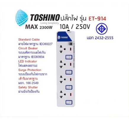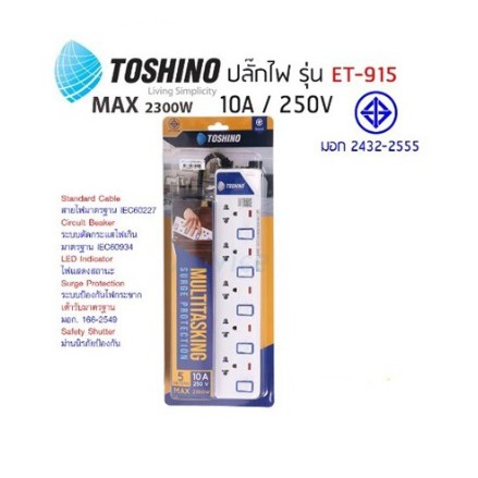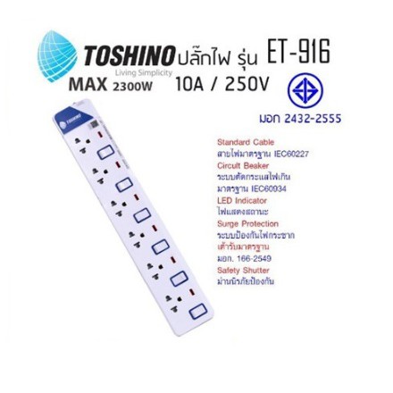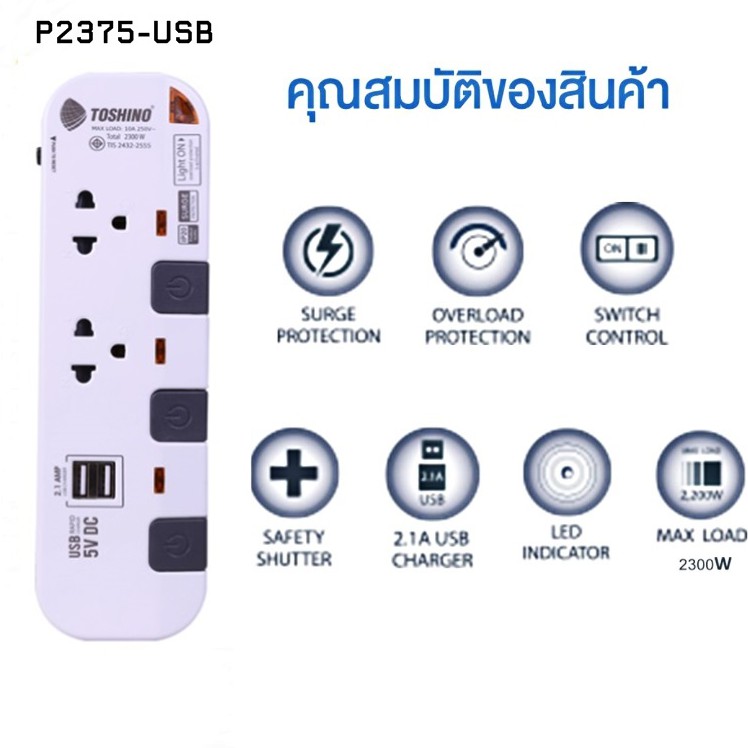 ถูกที่สุดปลั๊กไฟ ปลั๊กพ่วง ยี่ห้อToshino มี 2/3/4/5/6 ช่อง สายไฟยาว 3 เมตร และ 5 เมตร ฟรี!!ปลั๊กแปลง