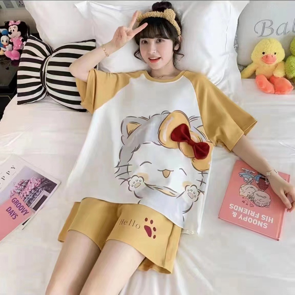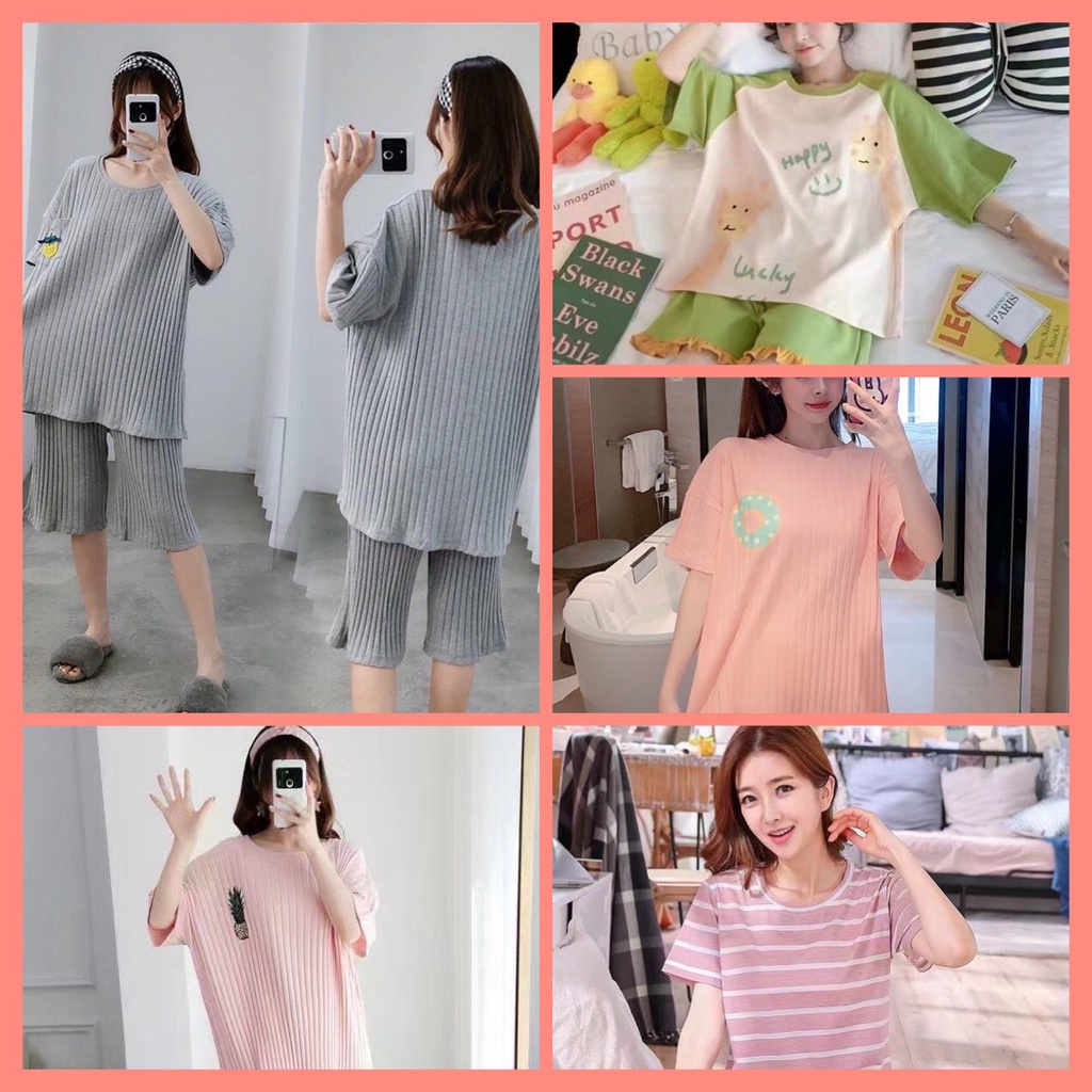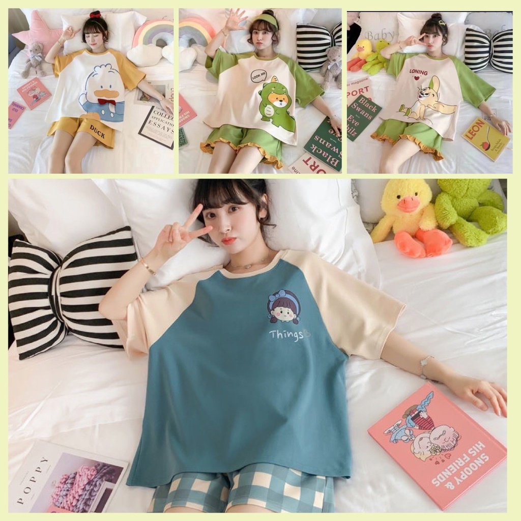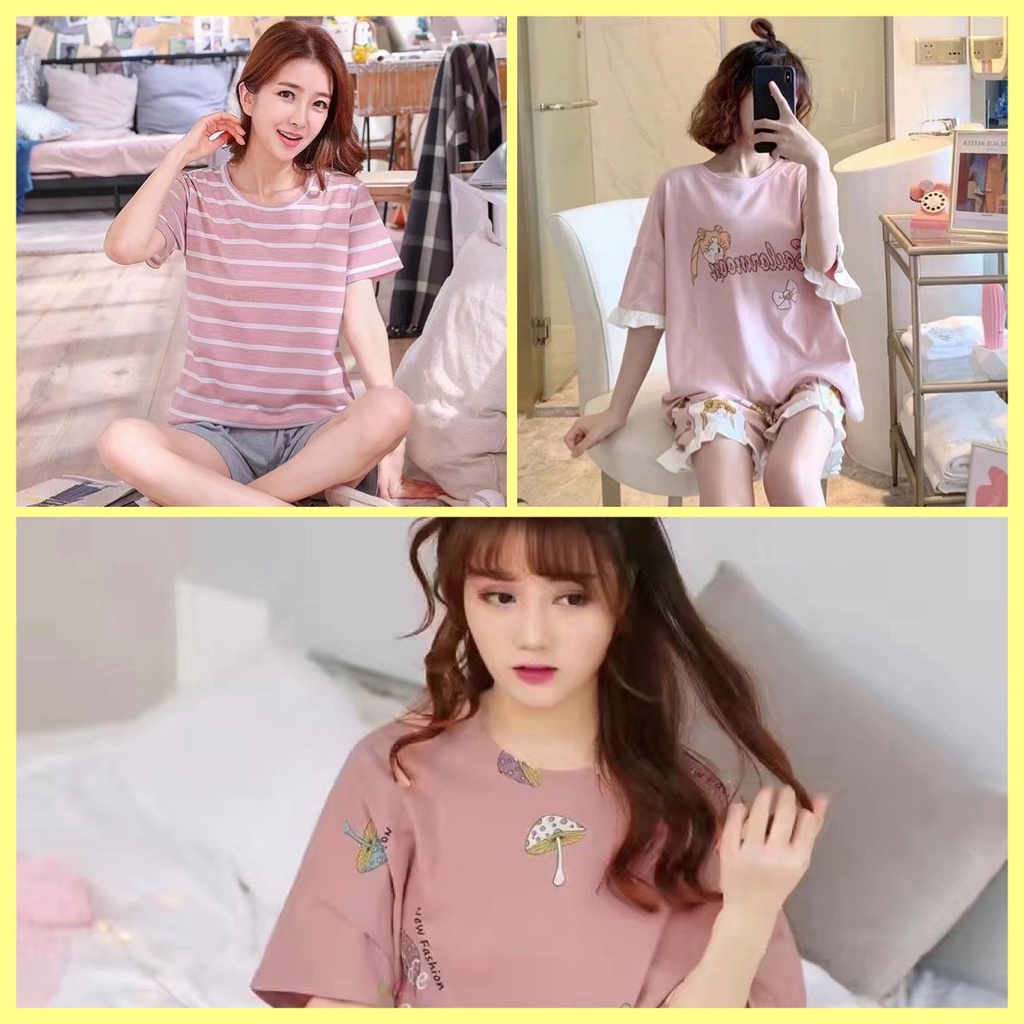 -สินค้าพร้อมส่ง- ชุดนอนคอกลมลายการ์ตูน+ลายผลไม้ แขนสั้น+ขาสั้น ชุดลำลองชุดอยู่บ้าน สวมใส่สบาย มีหลากหลายลายแบบ