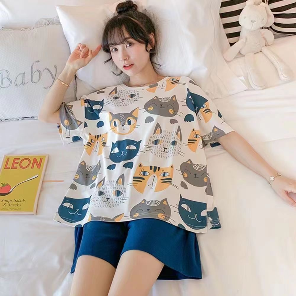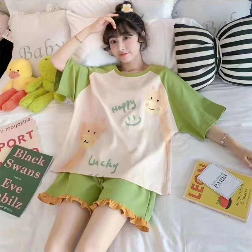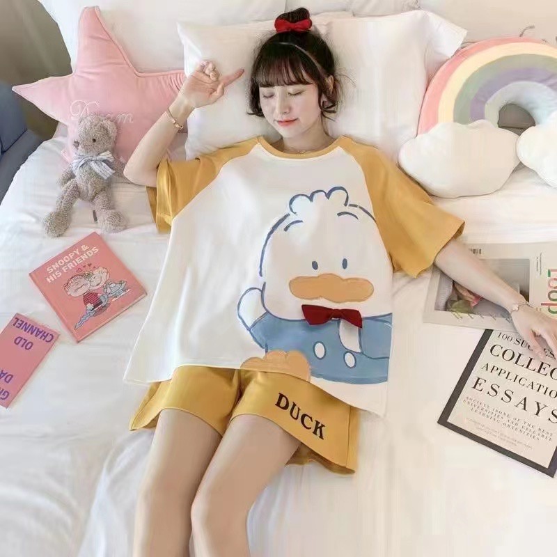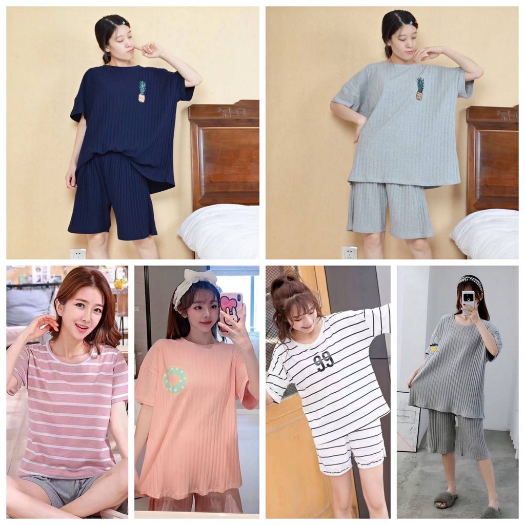 -สินค้าพร้อมส่ง- ชุดนอนคอกลมลายการ์ตูน+ลายผลไม้ แขนสั้น+ขาสั้น ชุดลำลองชุดอยู่บ้าน สวมใส่สบาย มีหลากหลายลายแบบ