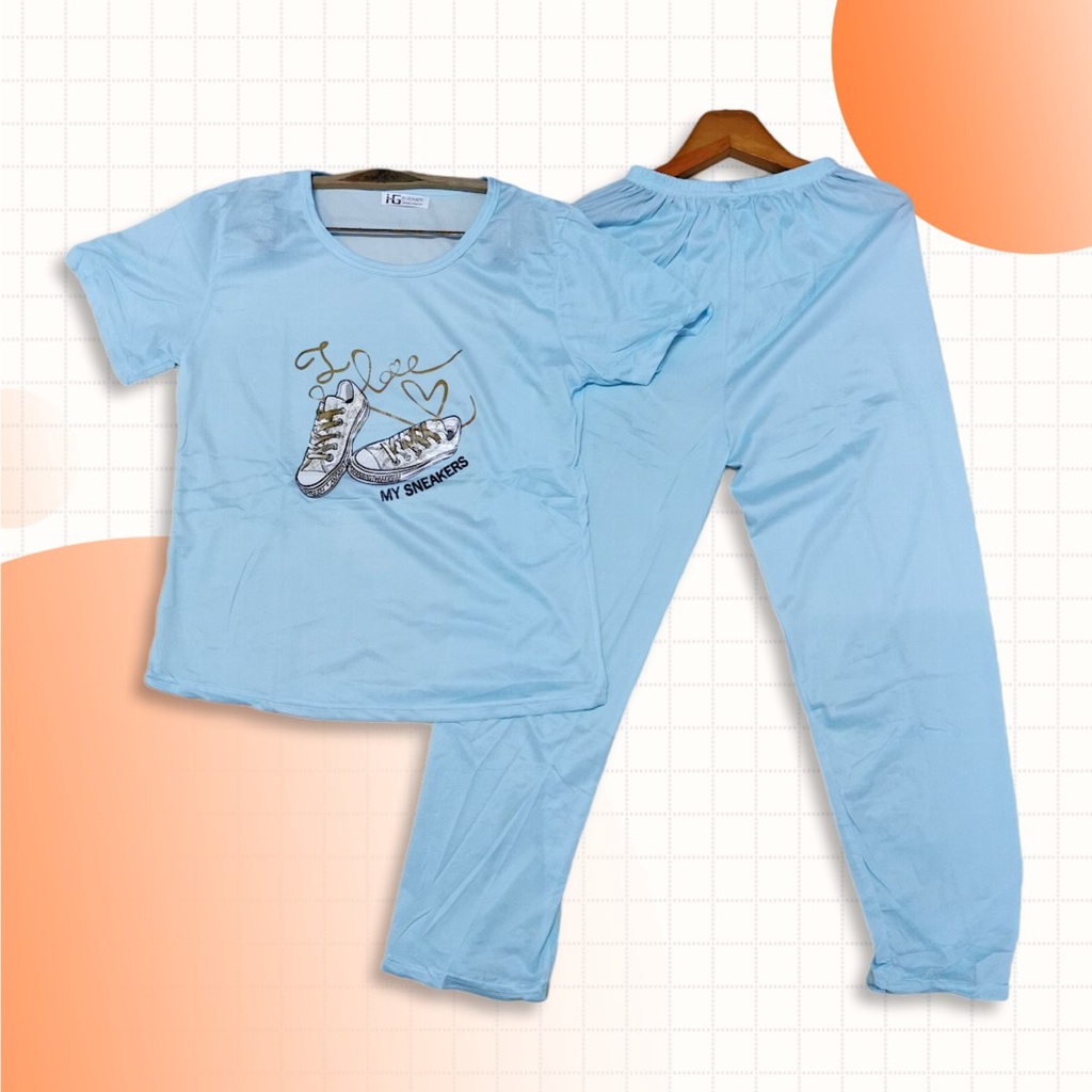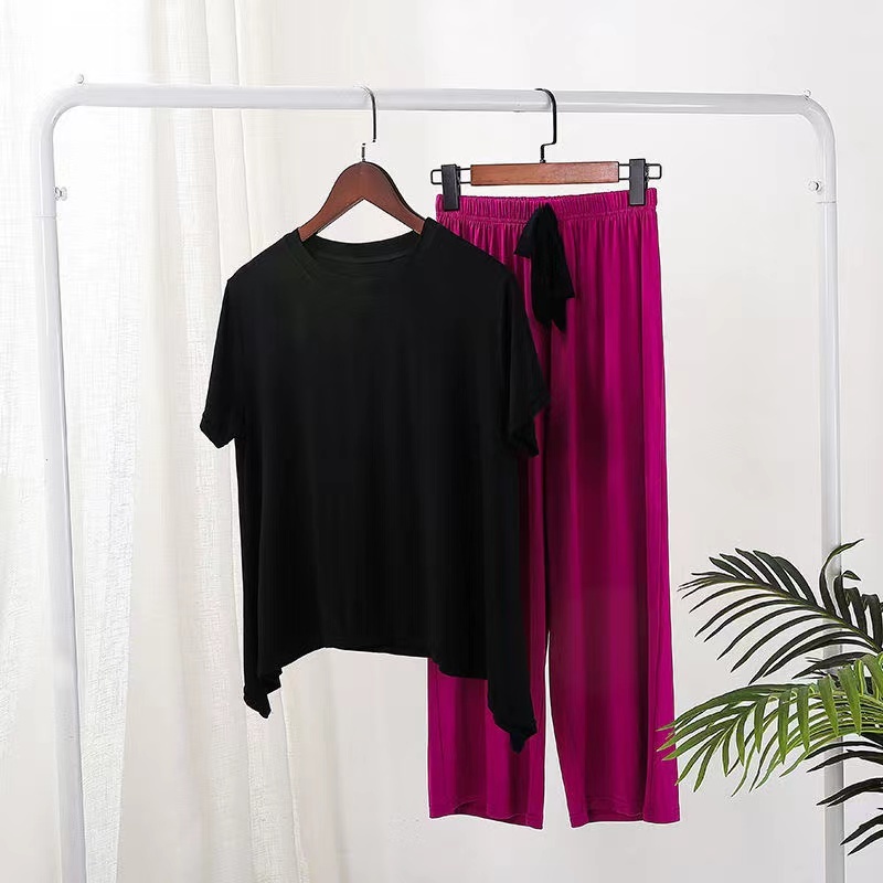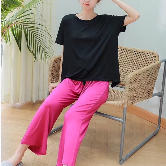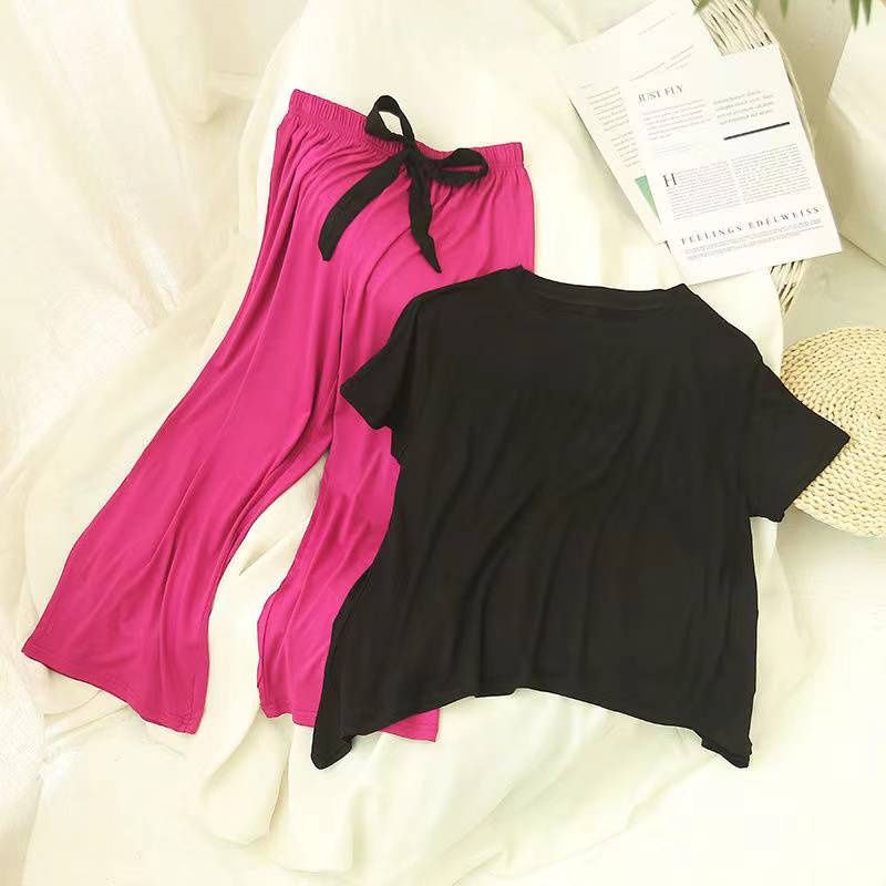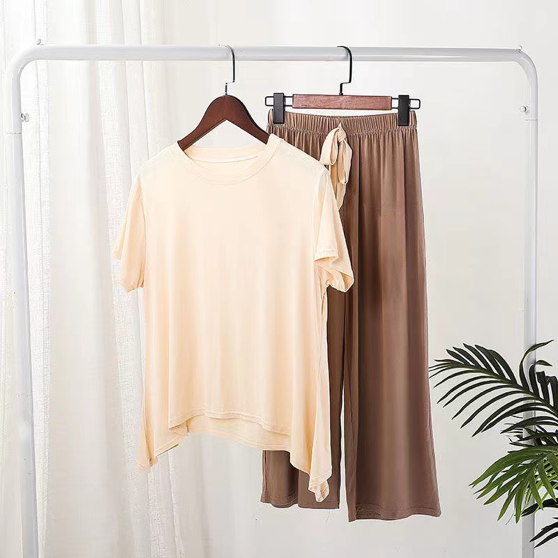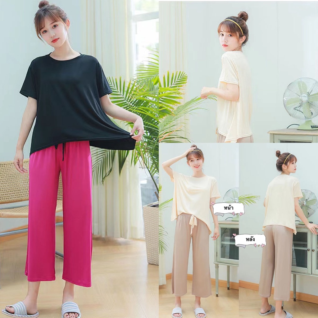 พร้อมส่ง*ชุดเซ็ตลำลองแฟชั่นผู้หญิง เซ็ต2ชิ้น เสื้อแขนสั้น+กางเกงขายาว มีเชือกผูกเอว เนื้อผ้าดี ชุดแฟชั่น