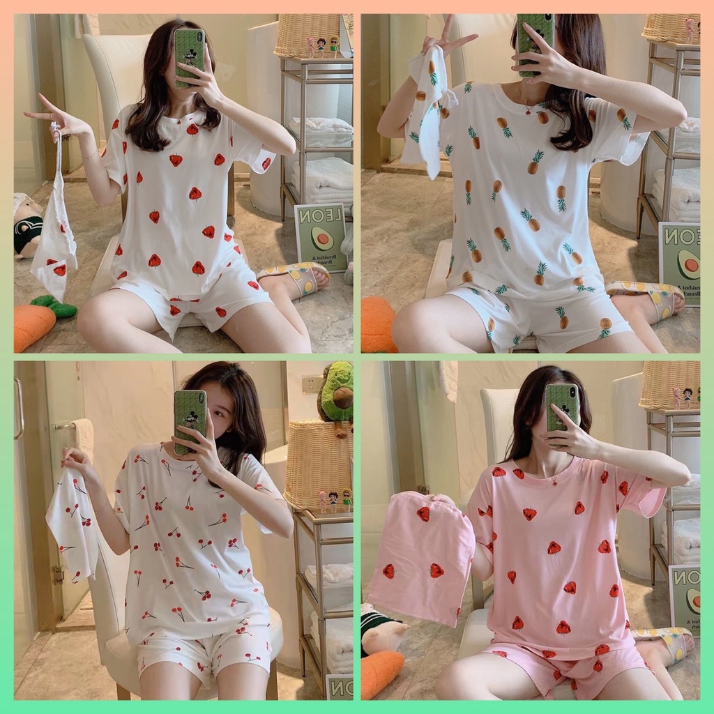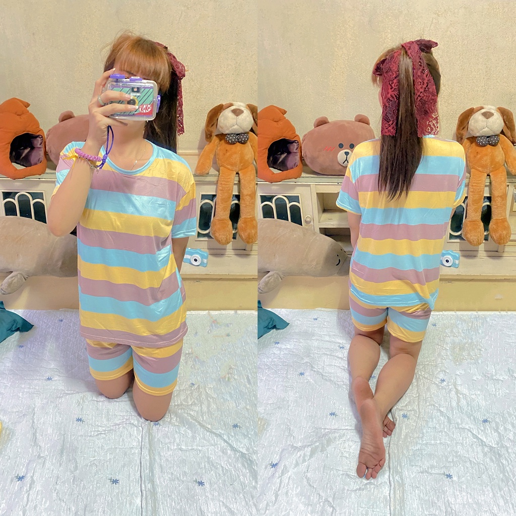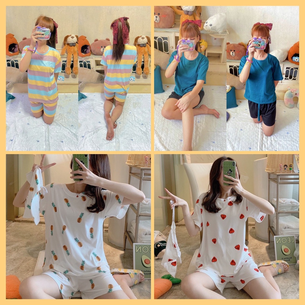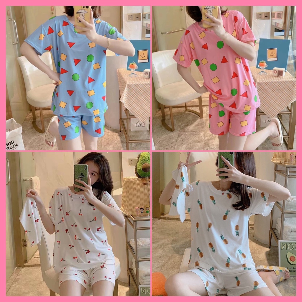 +ชุดนอนพร้อมส่ง+ Set ชุดนอน คอกลม ลายการ์ตูน แขนสั้น +ขาสั้น ชุดนอนหญิง ราคาถูก คุณภาพดี ใส่สบาย ไม่ร้อน หลายไซส์หลายสี