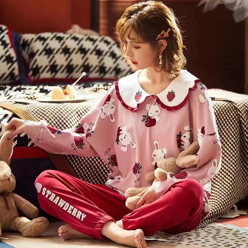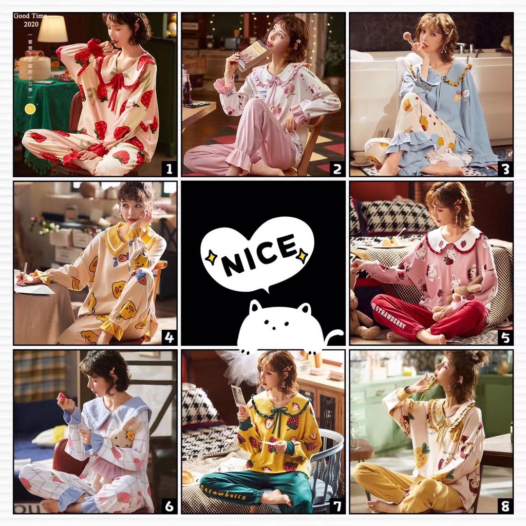 📢 พร้อมส่ง📢 ชุดนอนผู้หญิง ลายน่ารัก 2 ชิ้น เสื้อแขนยาว +กางเกงขายาว ผ้านิ่ม ใส่สบาย ใส่นอน