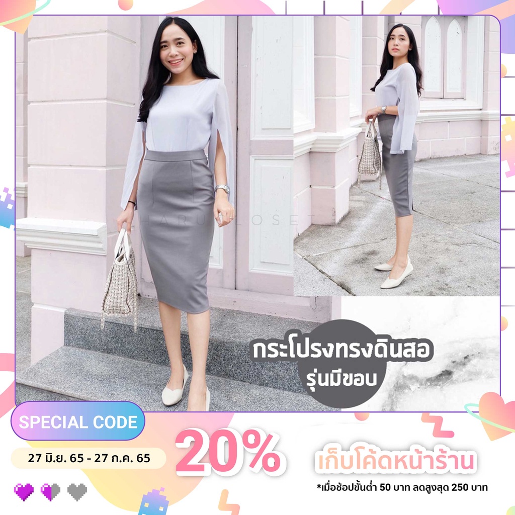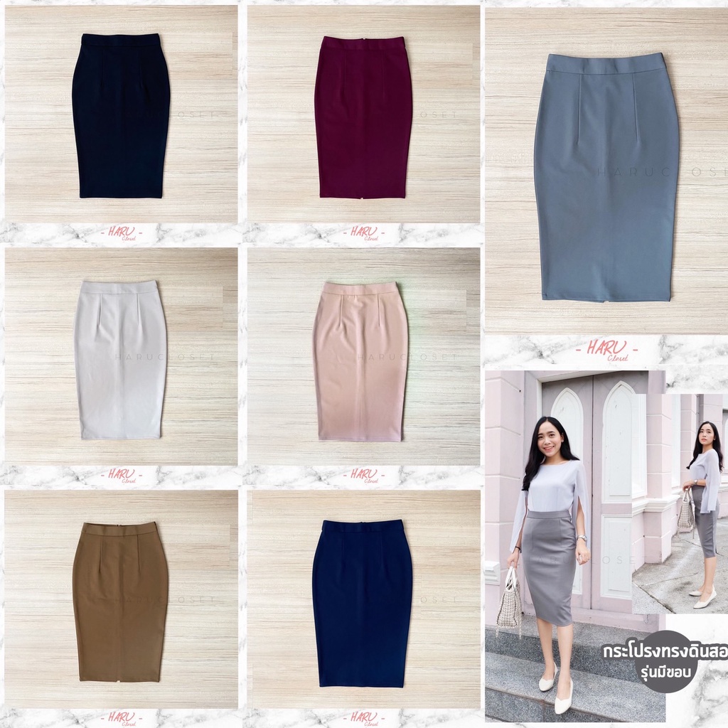 กระโปรงทรงดินสอ รุ่นมีขอบที่เอว มี 7 สีให้เลือก (ความยาว 26 นิ้ว)