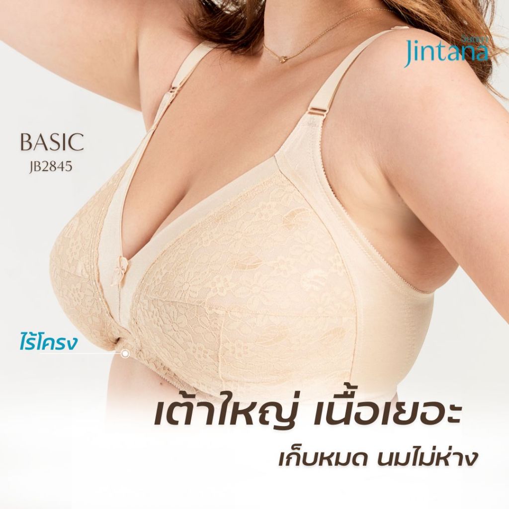 Jintana เสื้อชั้นใน จินตนา รุ่น Basic รหัส JB2845 (ไม่มีโครง) สีเบจ เสื้อในเก็บกระชับ เก็บเนื้อส่วนเกิน เสื้อในลายลูกไม้