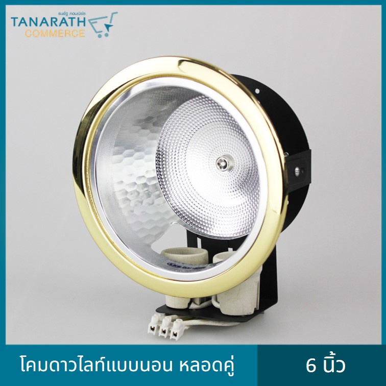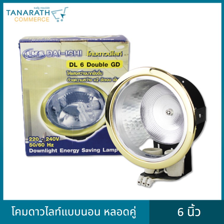 โคมดาวน์ไลท์ หน้ากลม 6 นิ้ว ขอบขาว,ขอบทอง โคมไฟหลอดคู่ แบบนอน โคมไฟเพดานฝังฝ้า Dai-ichi (ไดอิชิ)