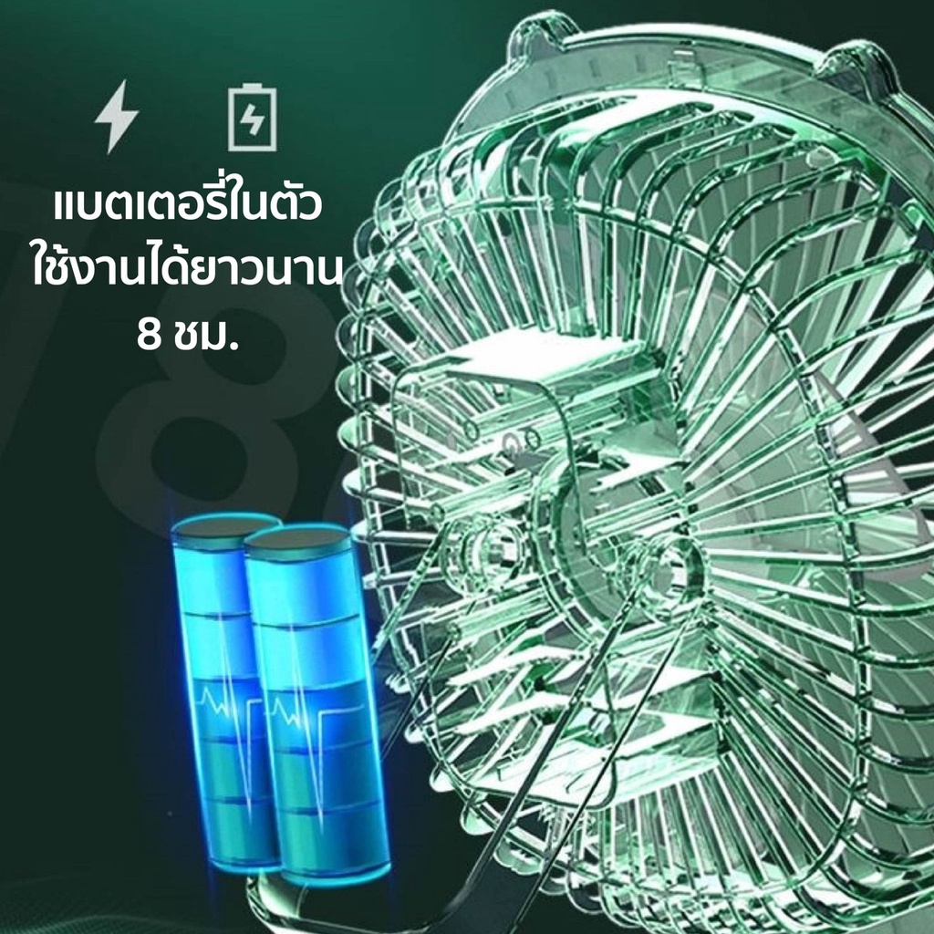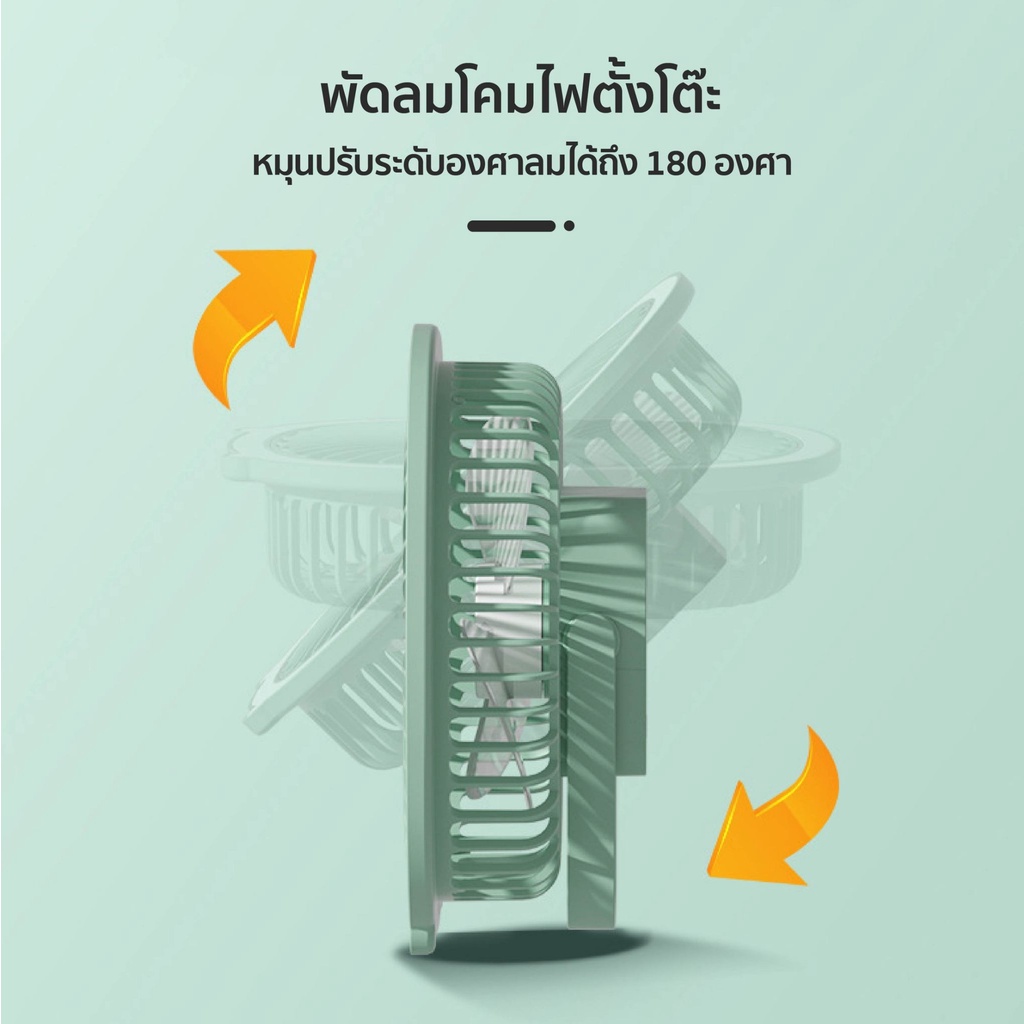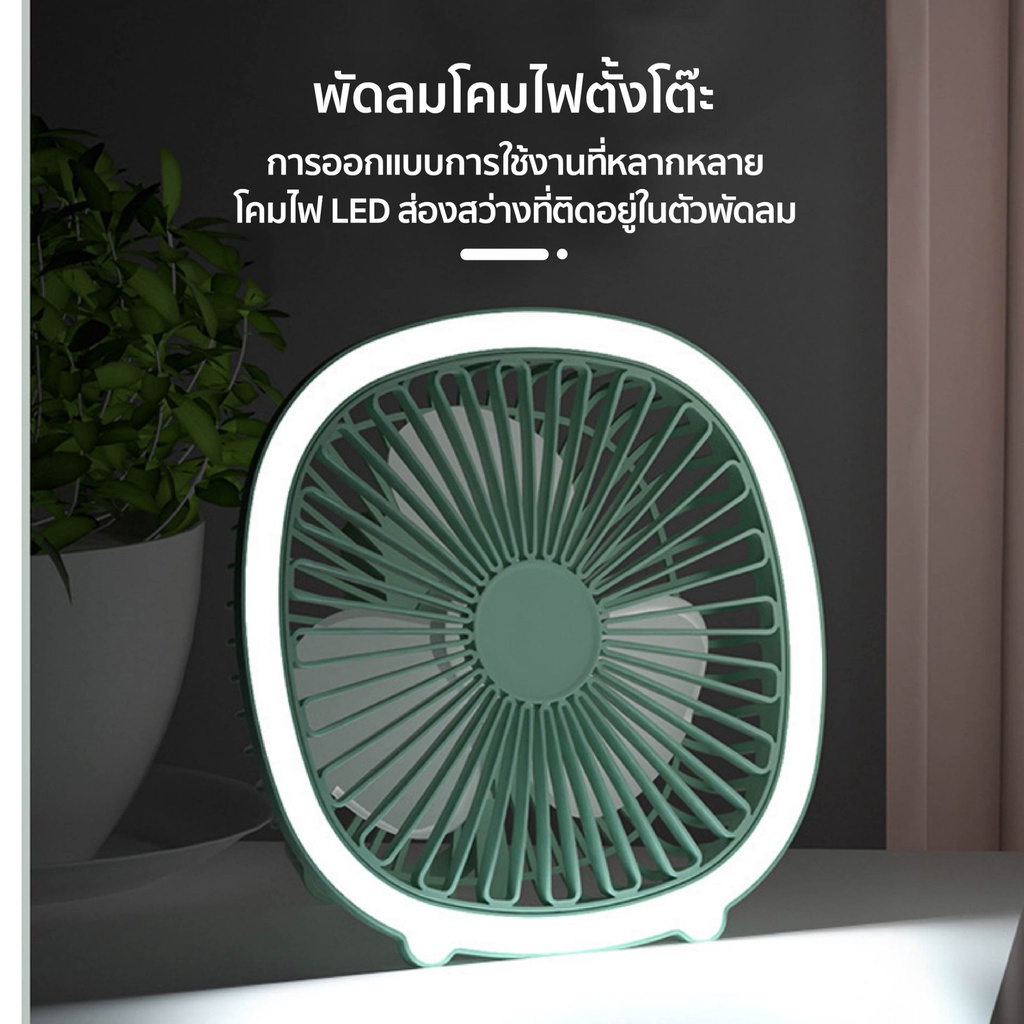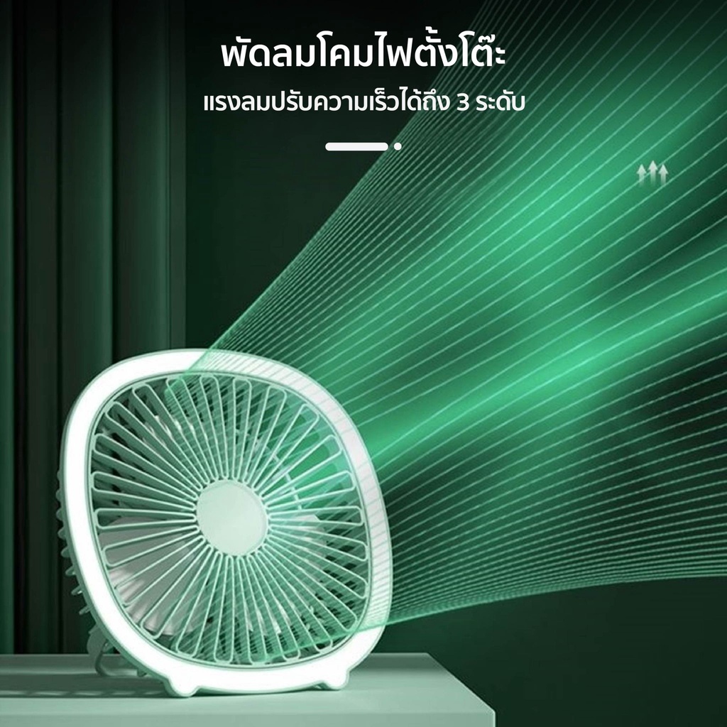 พัดลมพกพา มีโคมไฟ LED หมุนได้ 180° รุ่น DM-48 พัดลมไร้สาย แขวนได้ แรงลม3 ระดับ พัดลมชาร์จแบตได้ พัดลมแคมปิ้ง