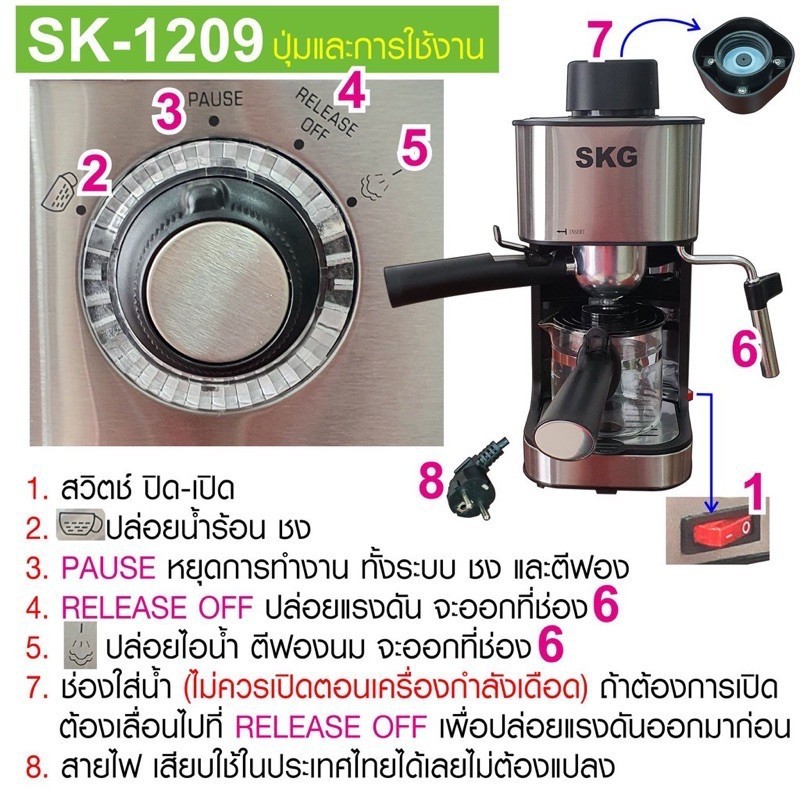 SKG เครื่องชงกาแฟ เครื่องชงกาแฟอัตโนมัติ 800W Coffee Maker เครื่องชงชา รุ่น SK-1209 เครื่องชงกาแฟสด ใช้ง่าย
