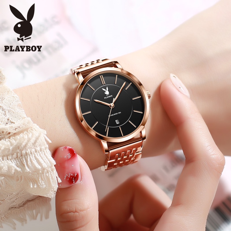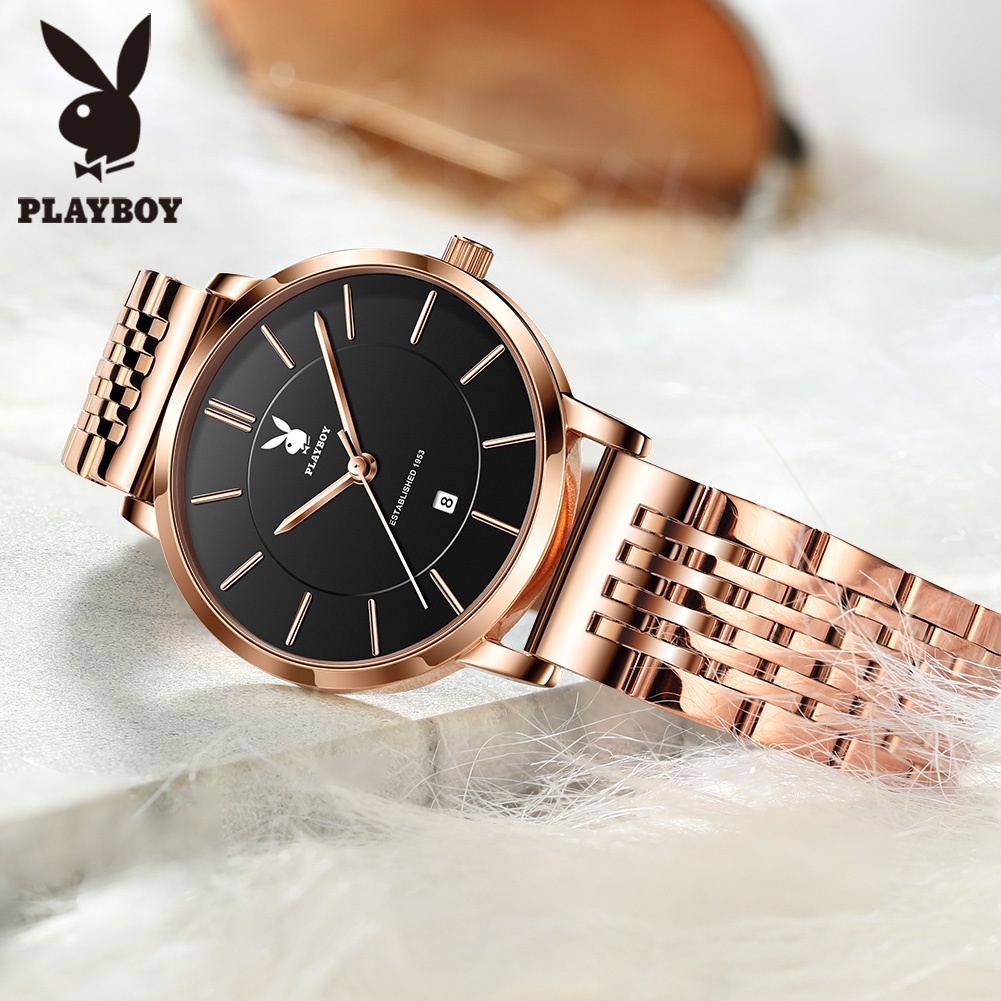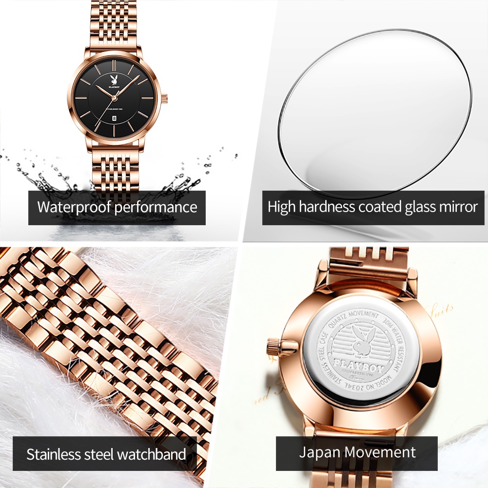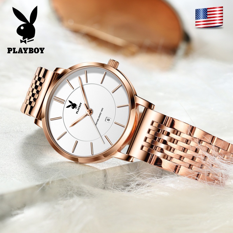PLAYBOY นาฬิกาข้อมือผู้หญิง กันน้ํา 100% นาฬิกาข้อมือผู้หญิงแท้ ด้วยวันที่ สไตล์เรียบง่าย นาฬิกาหญิง ของขวัญวันเกิด ของขวัญวันวาเลนไทน์ ของขวัญวันเกิดผู้หญิง นาฬิกาผู้หญิง 2034