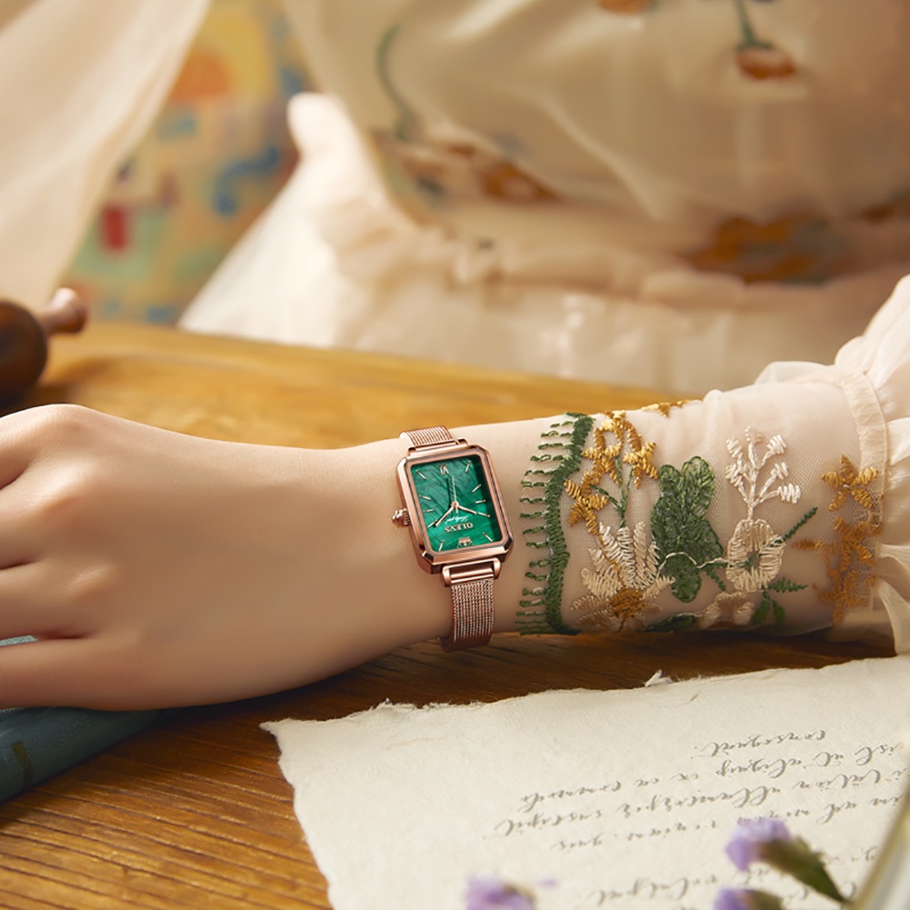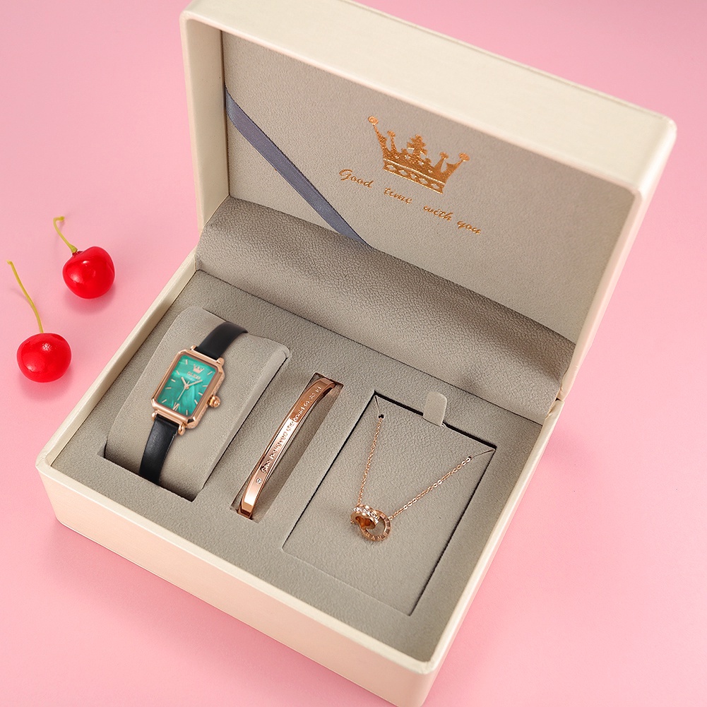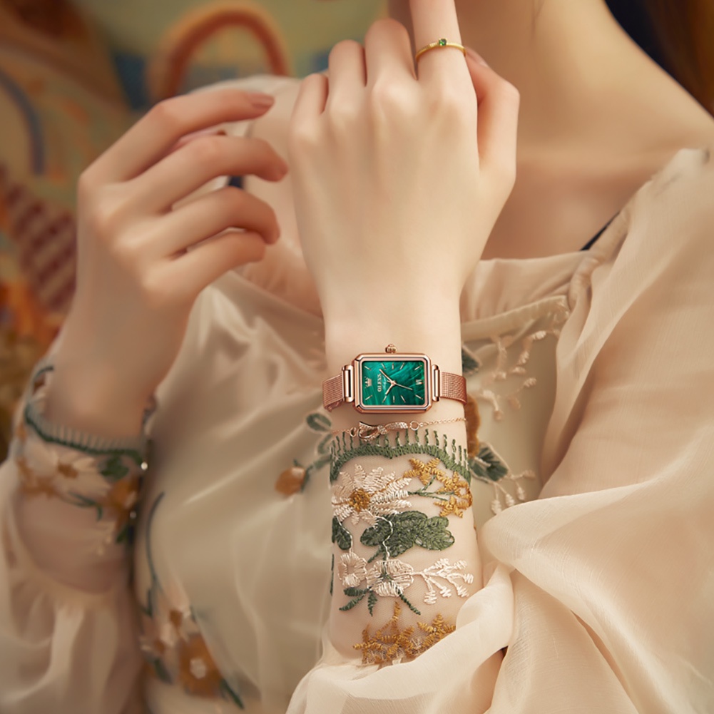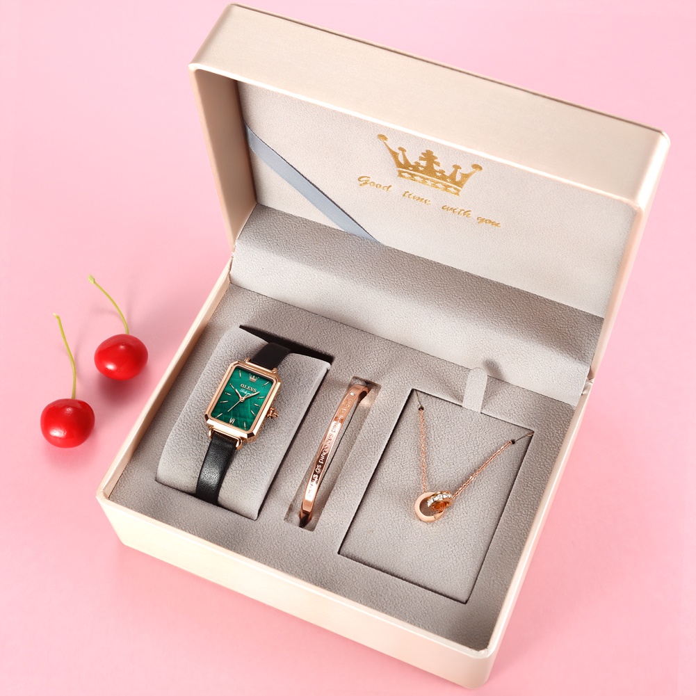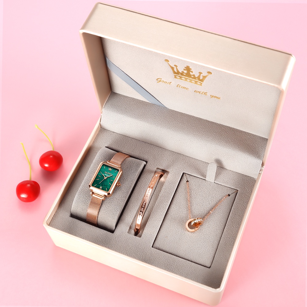 OLEVS 6624 นาฬิกาข้อมือผู้หญิง หน้าปัดสี่เหลี่ยม ห่อของขวัญ ของขวัญวันวาเลนไทน์ แฟชั่น กันน้ำ