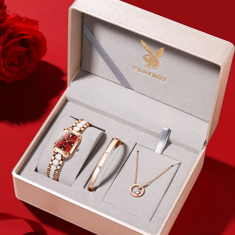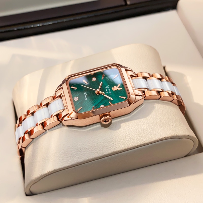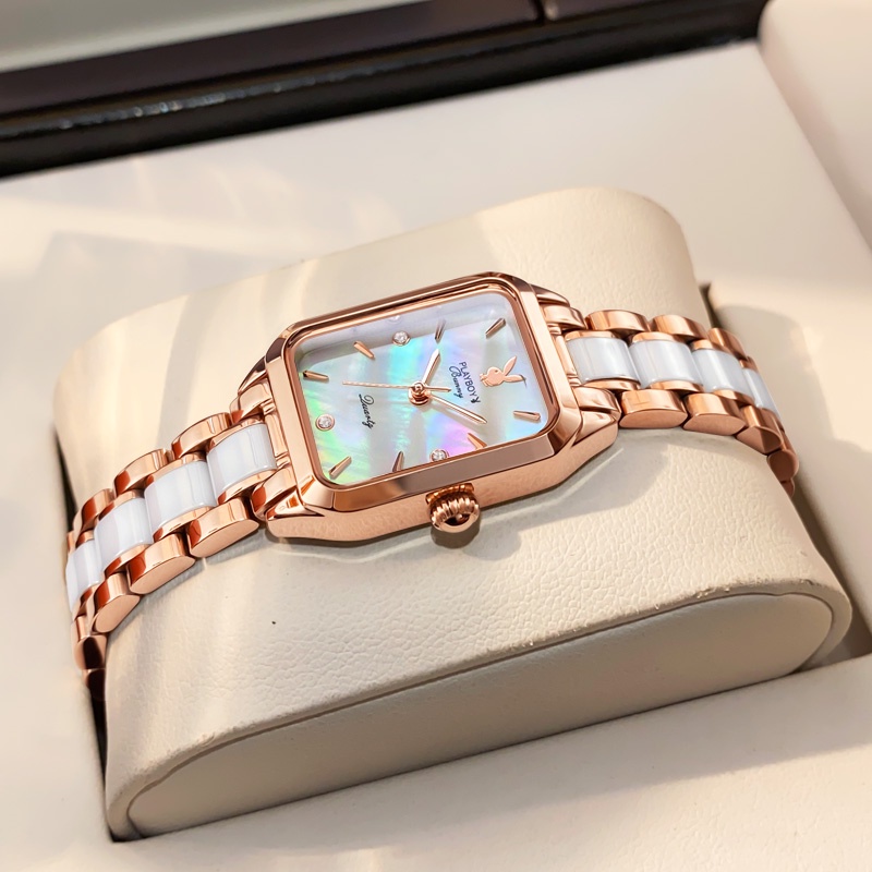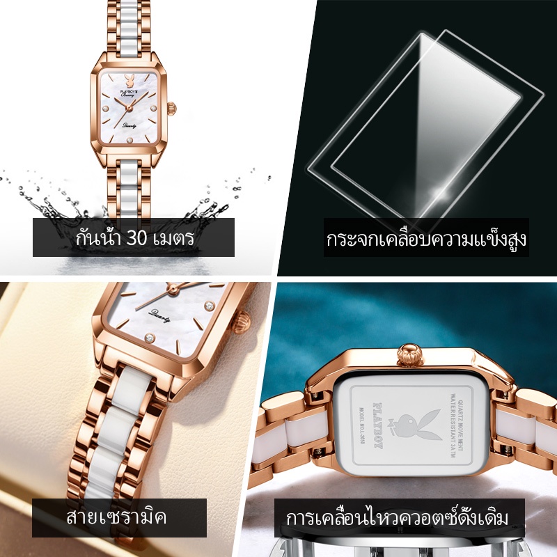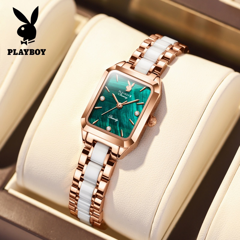 PLAYBOY 2050 นาฬิกาข้อมือผู้หญิงแท้ กันน้ำได้ 100% แบรนด์แฟชั่น สายเซรามิคสแตนเลสสวยๆ ทนต่อการขีดข่วน สีแดง สีขาว เขียว ของขวัญวาเลนไทน์ หรูหรา