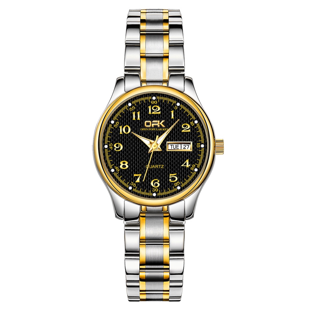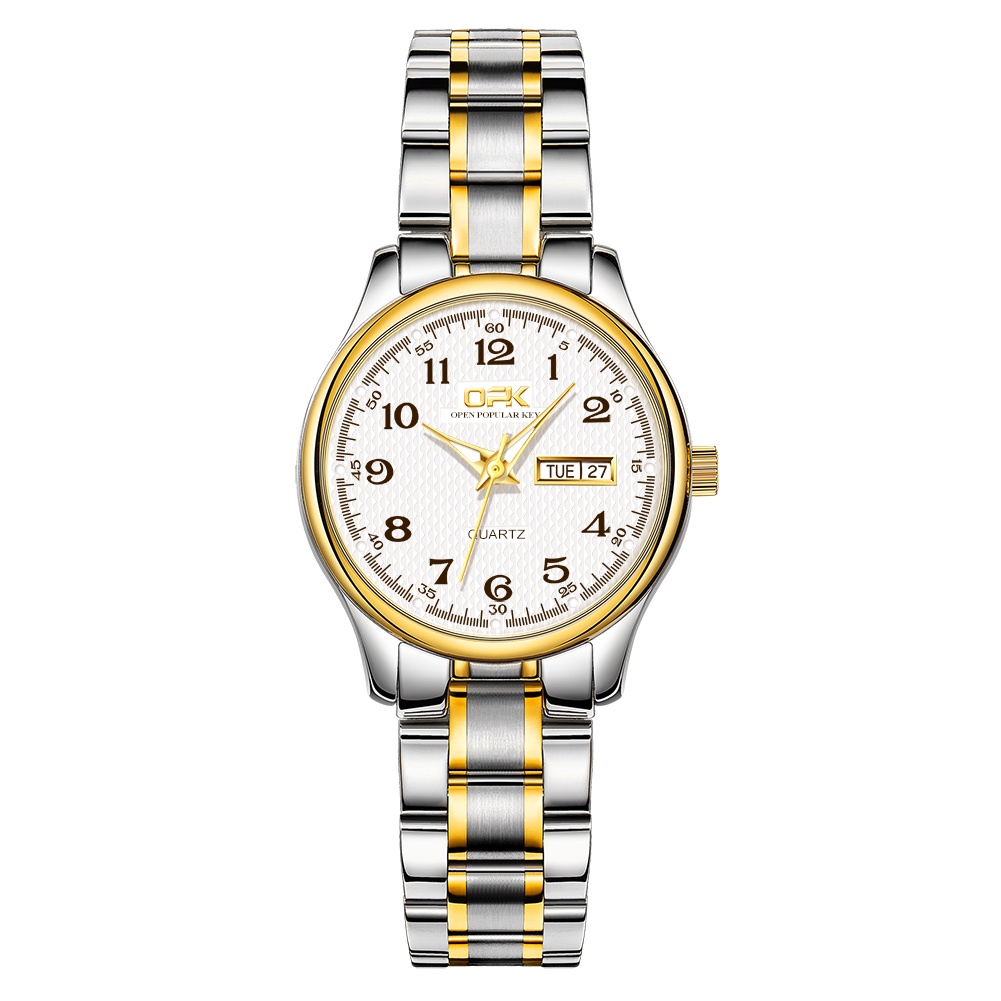 OPK นาฬิกาข้อมือผู้หญิง กันน้ำ สายสแตนเลส เข็มชี้ส่องสว่าง นาฬิกาควอตซ์ ของขวัญวันเกิดผู้หญิง - นาฬิกาข้อมือ 8110