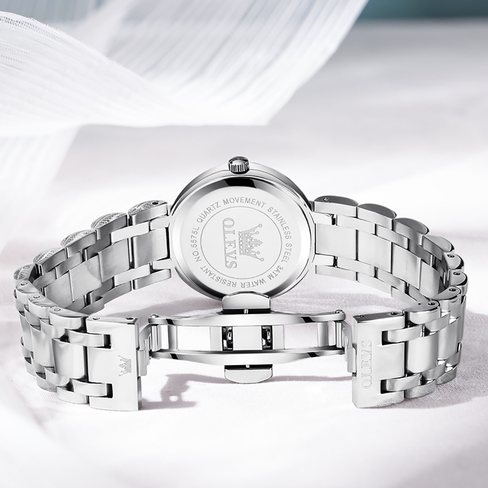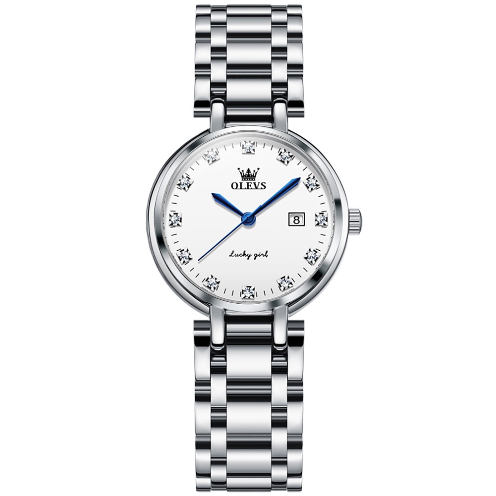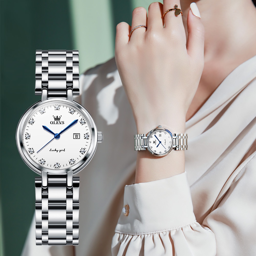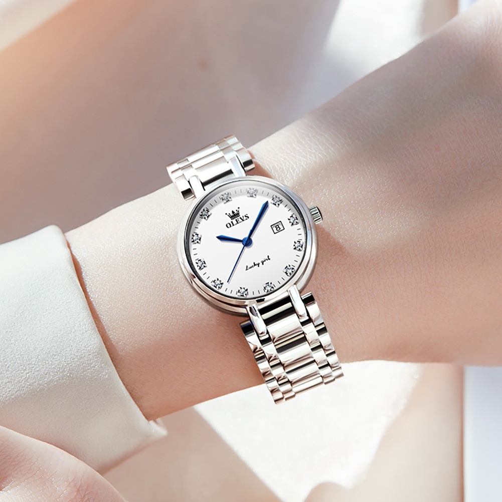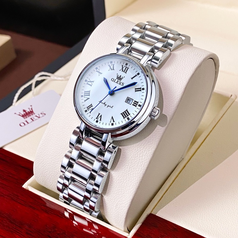 OLEVS 5575 นาฬิกาข้อมือผู้หญิงกันน้ำ แท้ แฟชั่น แบรนด์เนม เล็ก สแตนเลส สีขาว สีฟ้า รับประกัน 3 ปี ของขวัญวันเกิด