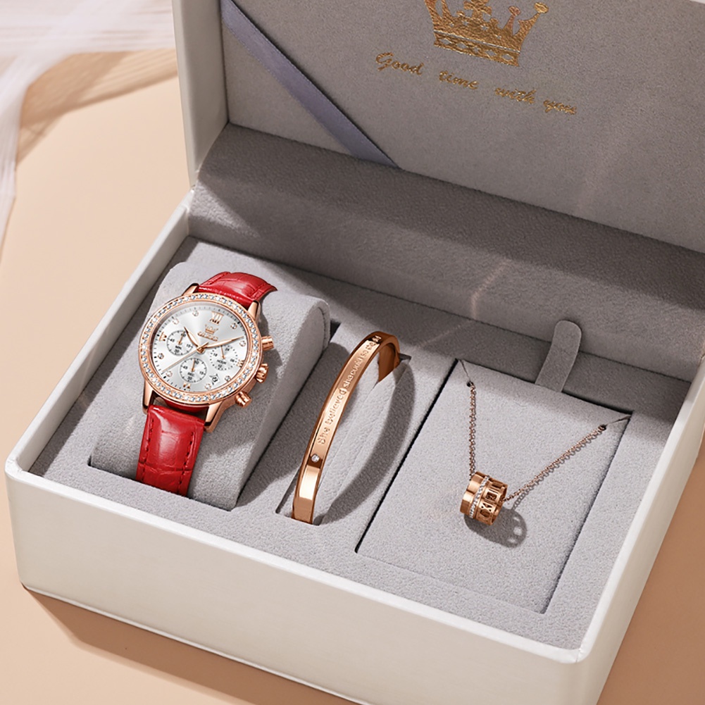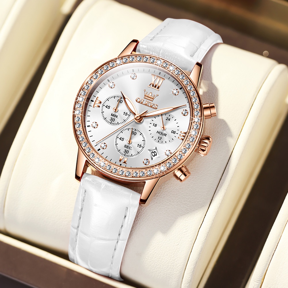 OLEVS นาฬิกาข้อมือผู้หญิง กันน้ำ 100% ส่องสว่าง ปฏิทิน นาฬิกา มัลติฟังก์ชั่น เข้ากับทุกการแต่งกาย ของขวัญวันเกิดผู้หญิง นาฬิกาข้อมือ รุ่น: 9933