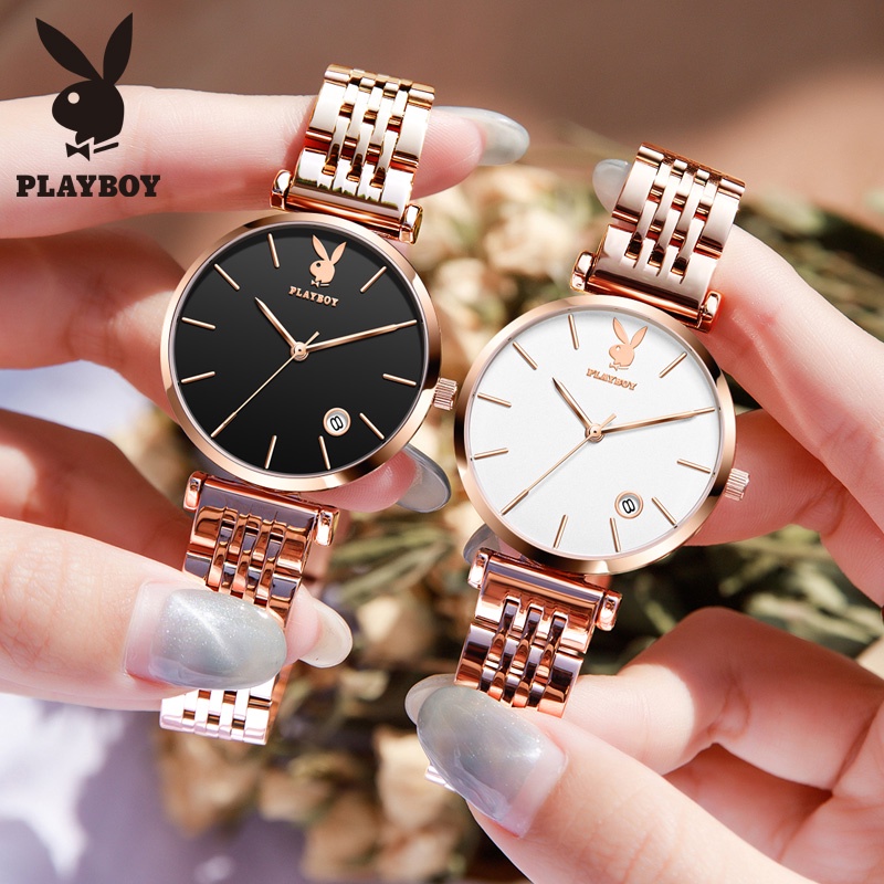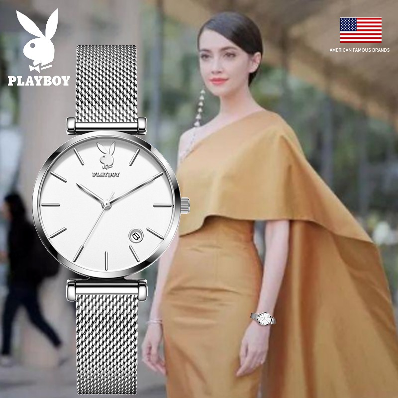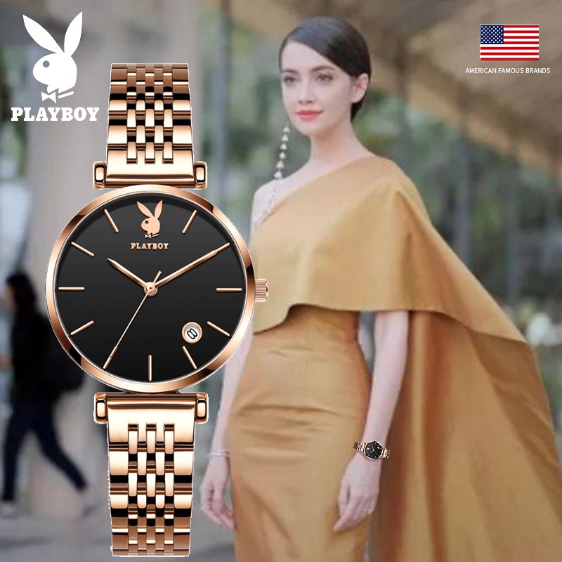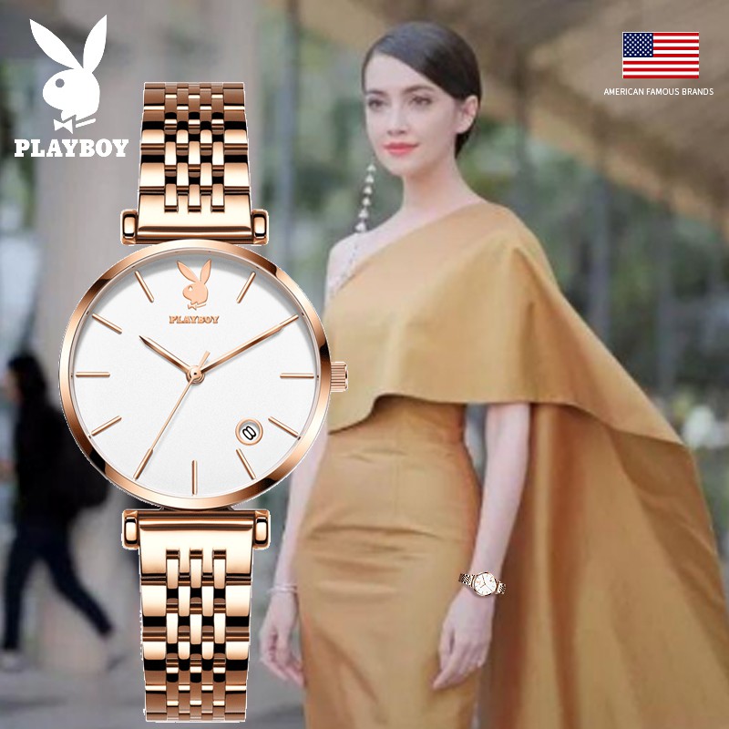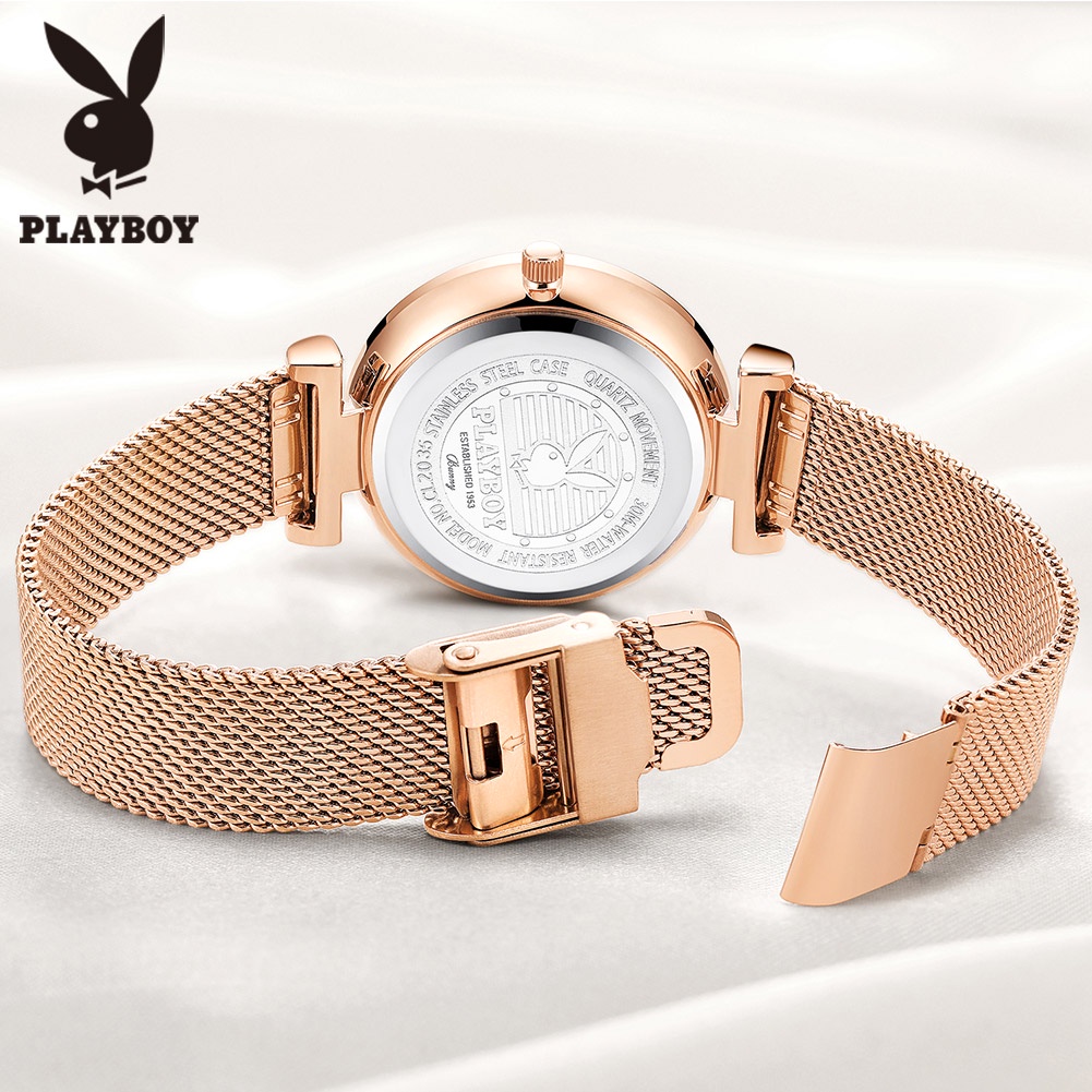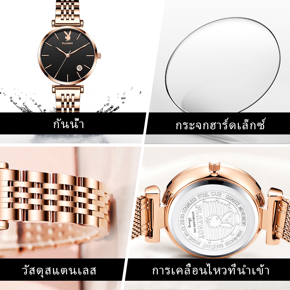 PLAYBOY นาฬิกาข้อมือผู้หญิง กันน้ํา สายสแตนเลส เข็มชี้ส่องสว่าง ของขวัญวันเกิดผู้หญิง ข้อมือควอตซ์ นาฬิกาข้อมือ รุ่น: 2035