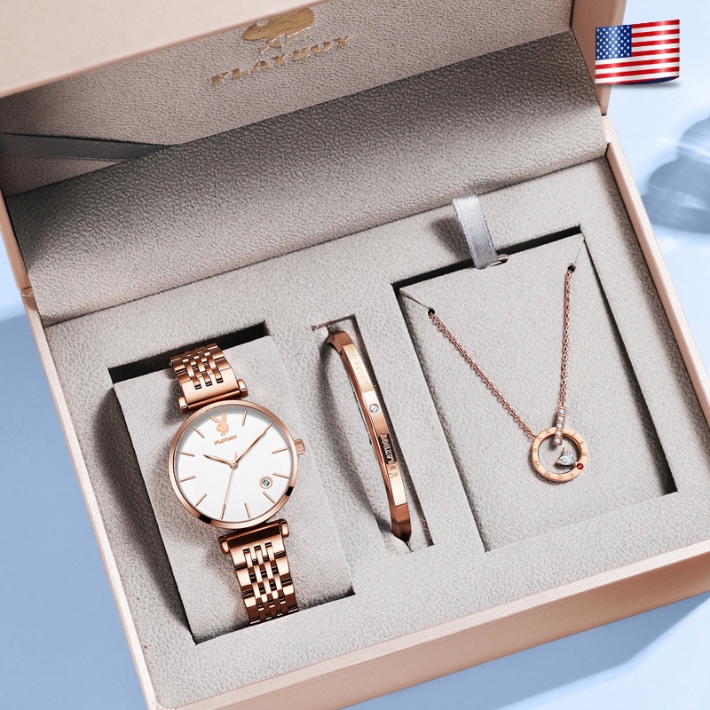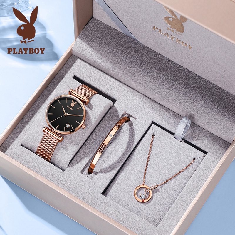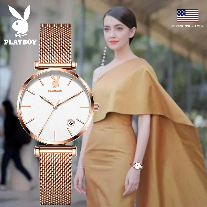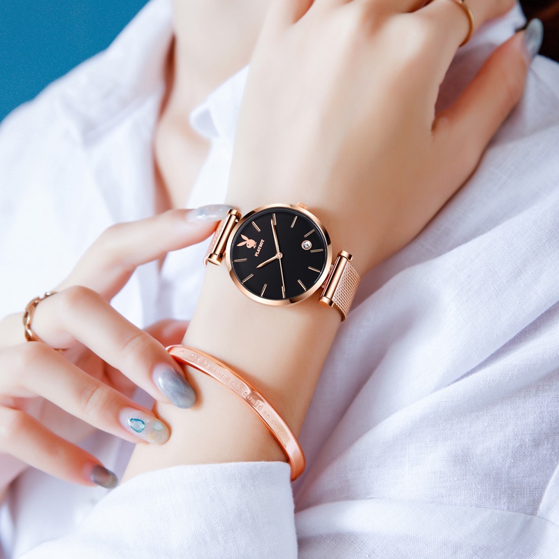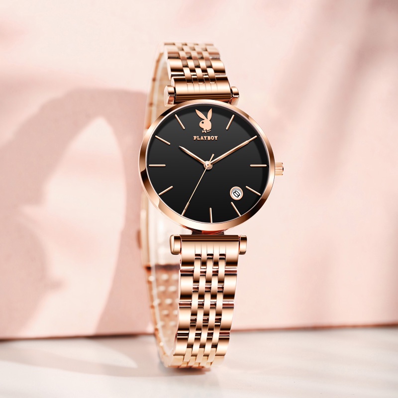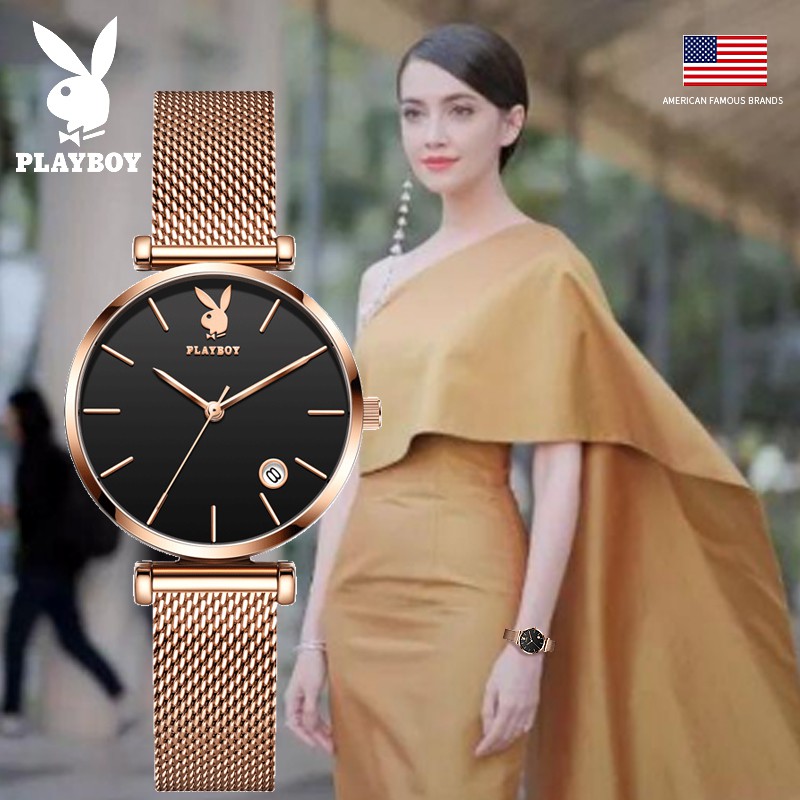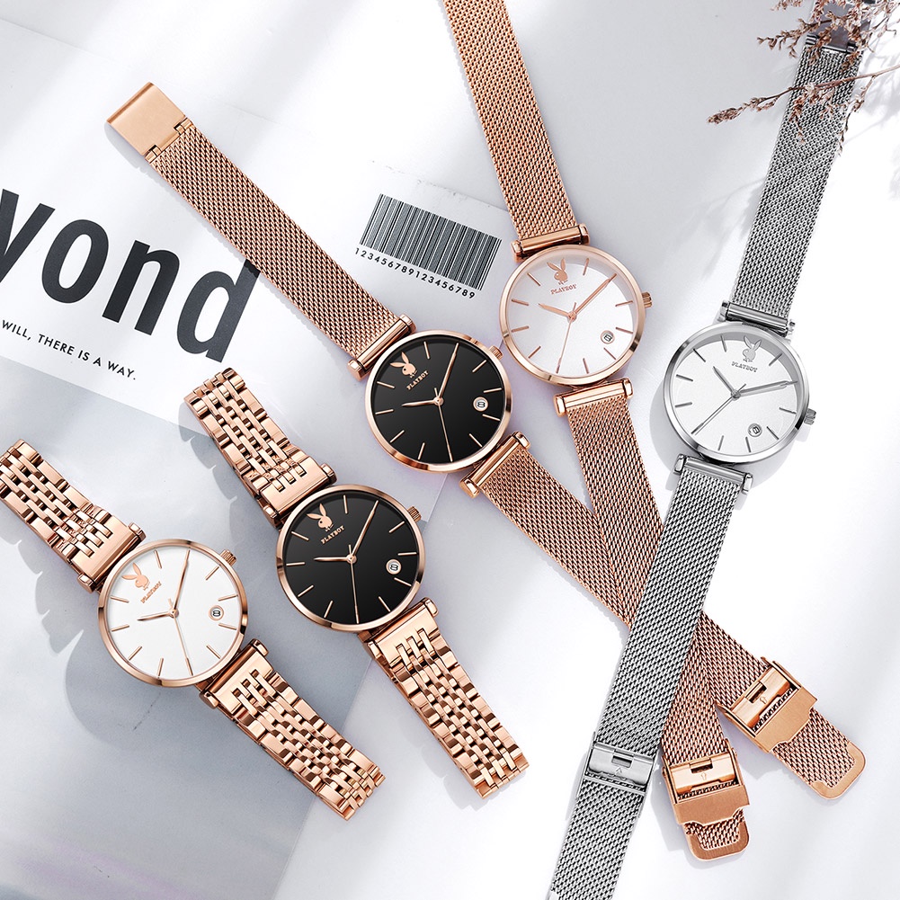 PLAYBOY นาฬิกาข้อมือผู้หญิง กันน้ํา สายสแตนเลส เข็มชี้ส่องสว่าง ของขวัญวันเกิดผู้หญิง ข้อมือควอตซ์ นาฬิกาข้อมือ รุ่น: 2035