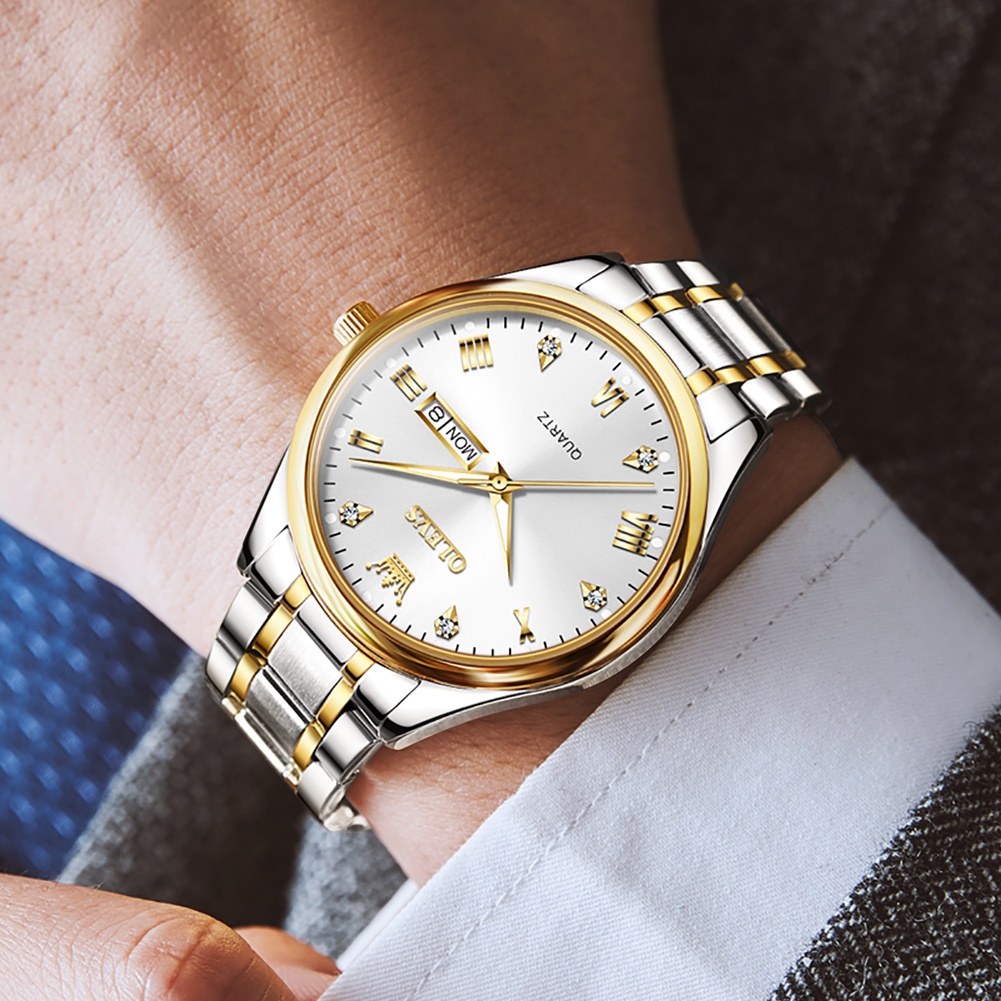 OLEVS นาฬิกาผู้ชาย กันน้ำ 100% แท้ สไตล์ธุรกิจ พร้อมปฏิทิน ส่องสว่าง สายสเตนเลส ทอง/สีขาว/สีดำ นาฬิกาควอตซ์ ของขวัญวันเกิดผู้ชาย นาฬิกาข้อมือ รุ่น: 5563