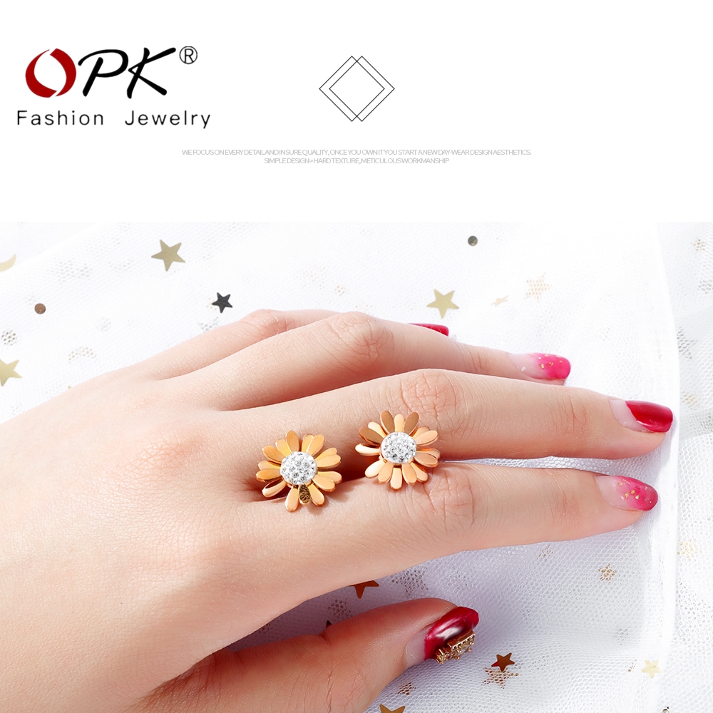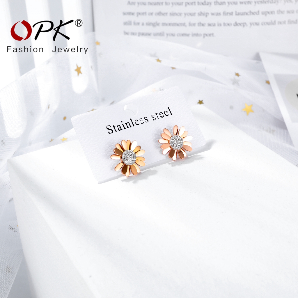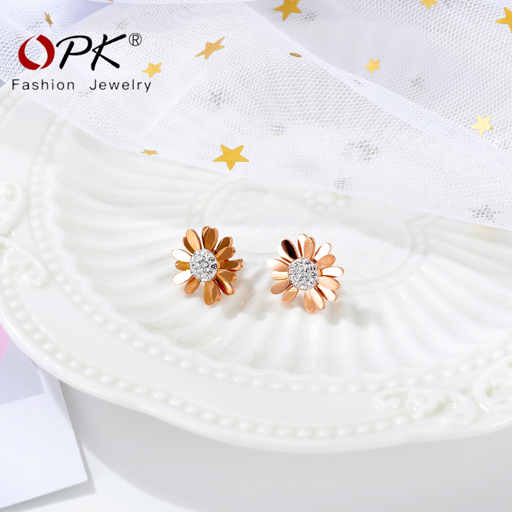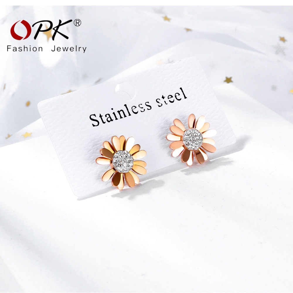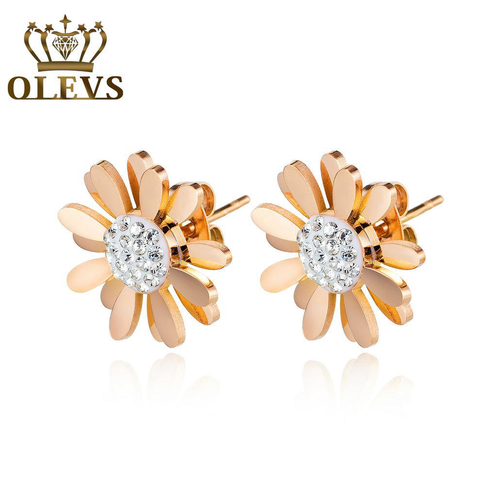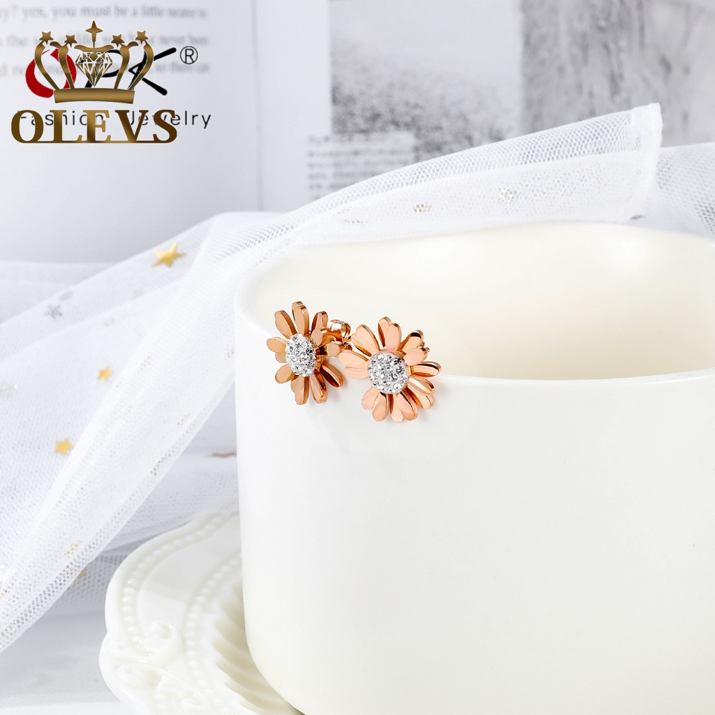OLEVS ต่างหูผู้หญิง รูปดอกเดซี่ สเตนเลส สีโรสโกลด์ หรูหรา เครื่องประดับ สำหรับผู้หญิง