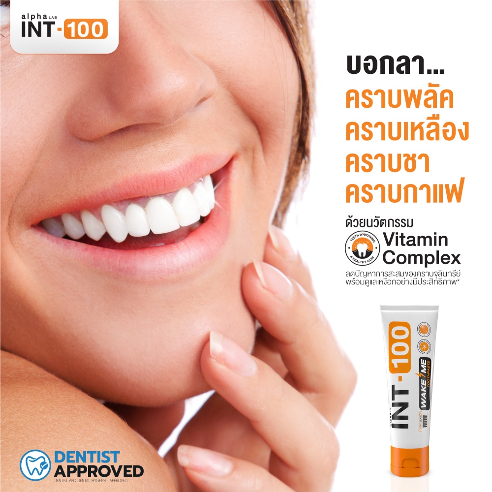 ยาสีฟัน INT-100 WAKE ME toothpaste รสMintBlastเย็นMax สดชื่น ช่วยให้ฟันขาว ลดเสียวฟัน กลิ่นปากคราบพลัค