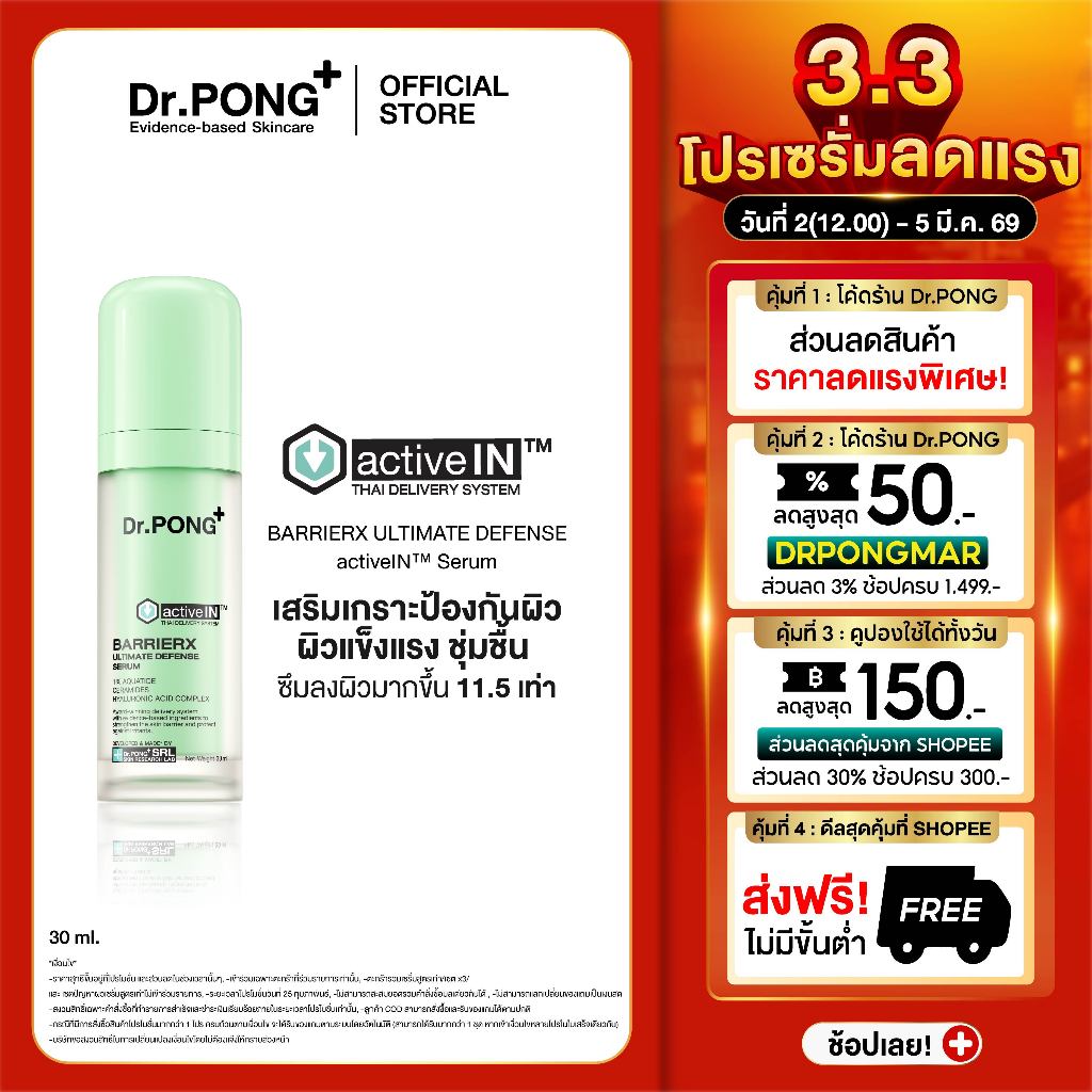 เซรั่มสูตรใหม่! Gen2 Dr.PONG BarrierX activein serum เซรั่มผิวชุ่มชื้น แข็งแรง
