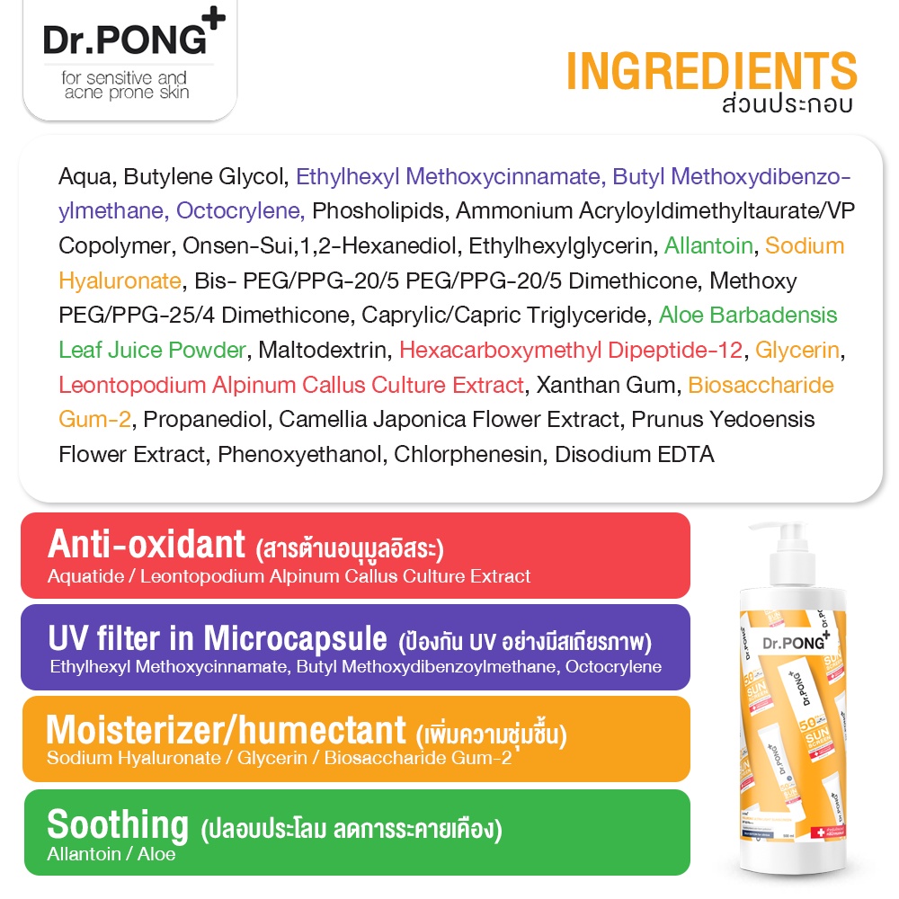 ไซส์สุดคุ้ม! 500 ml Dr.PONG Hyaluronic Ultra Light Sunscreen with Aquatide SPF50 PA+++ กันแดดหน้า