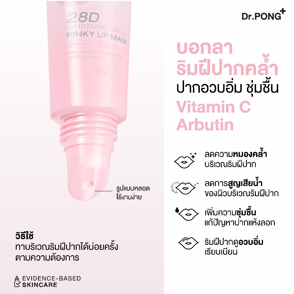 Dr.PONG 28D WHITENING DRONE PINKY LIP MASK ลิปมาสก์แก้ปากคล้ำ ปากชมพู ดูอวบอิ่ม
