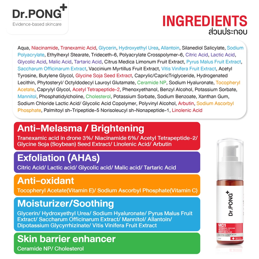 Dr.PONG MC1 WHITENING DRONE MELAS CLEAR BODY SERUM เซรั่มผิวกาย สำหรับ ฝ้ากระ จุดจ่างดำ