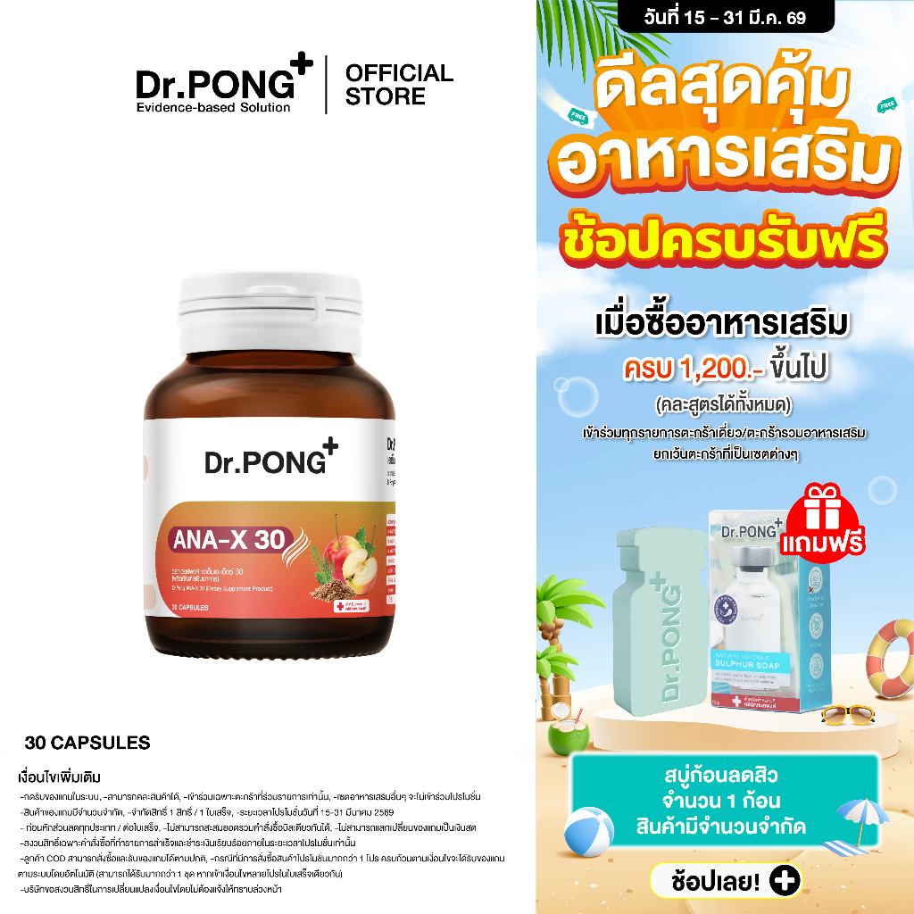Dr.Pong ANA-X 30 อาหารเสริมยืดวงจรเส้นผม ลดผมร่วง ผมบาง เพิ่มจำนวน เพิ่มน้ำหนักเส้นผม