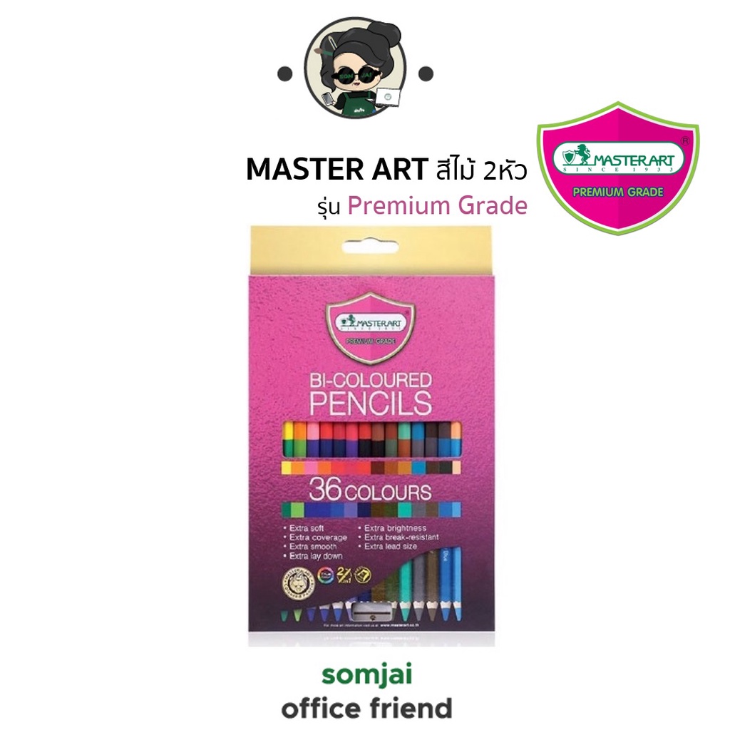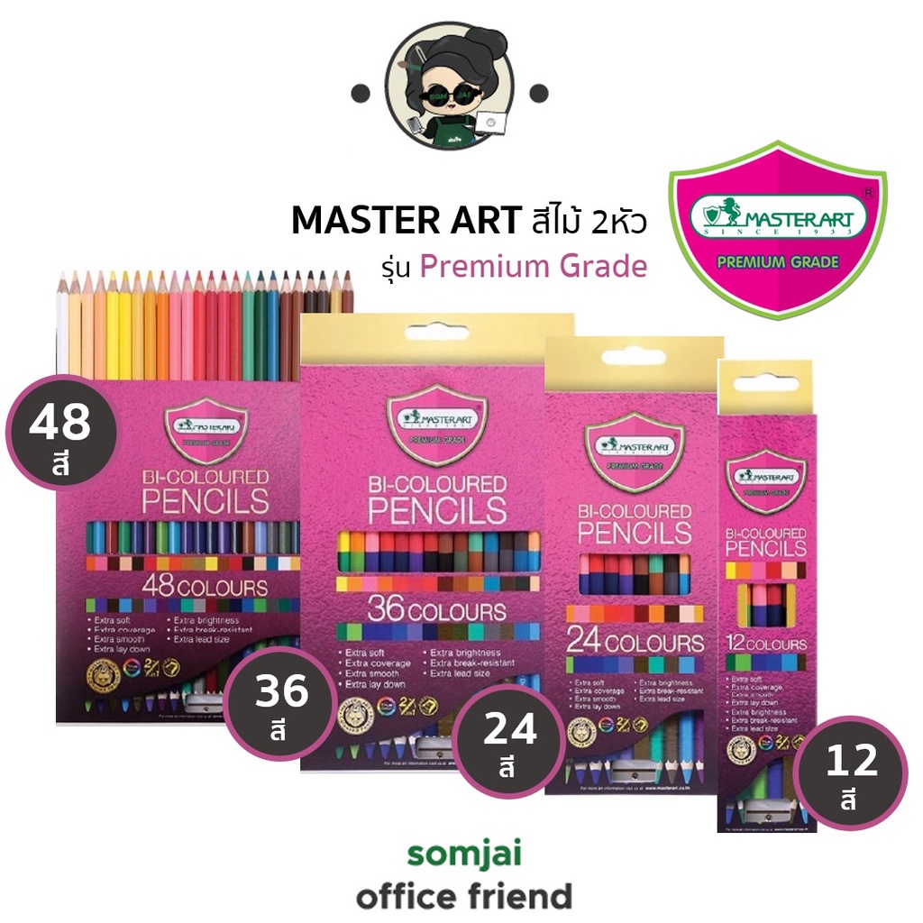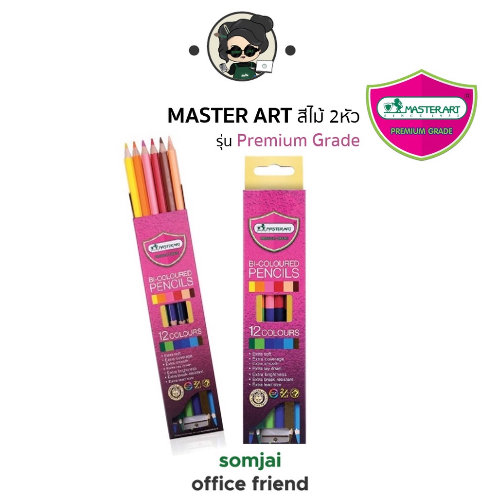 Master Art มาสเตอร์อาร์ต ดินสอสีไม้ชนิด 2 หัว รุ่น Premium Grade จำนวน 12 - 48 สี Set 1