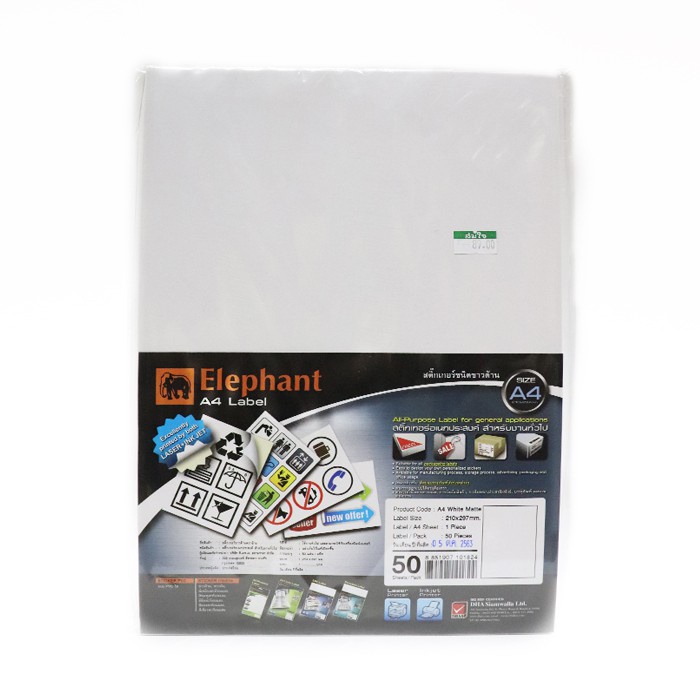 ตราช้าง แล็บสติ๊กเกอร์ label สีขาวด้าน ขนาดA4 สติ๊กเกอร์เนื้อกระดาษ (แพ็ค50)