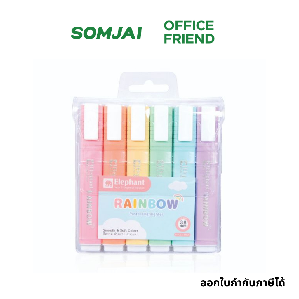 Elephant ปากกาไฮไลท์ ปากกา Hightlight ปากกาเน้นข้อความ เรนโบว์ คละสี จำนวน 1 แพ็ค