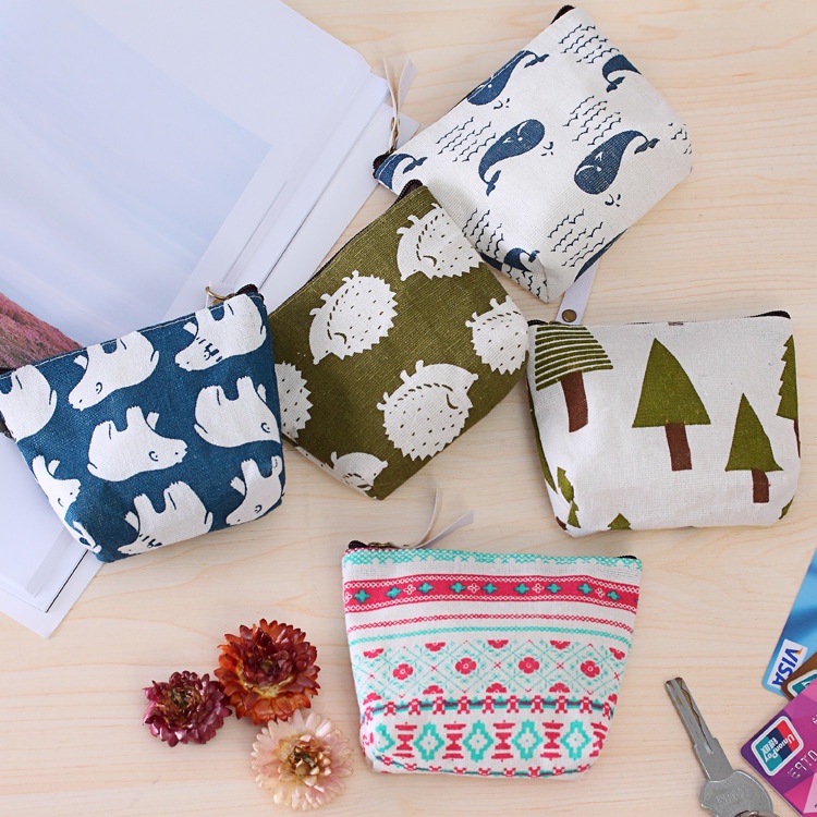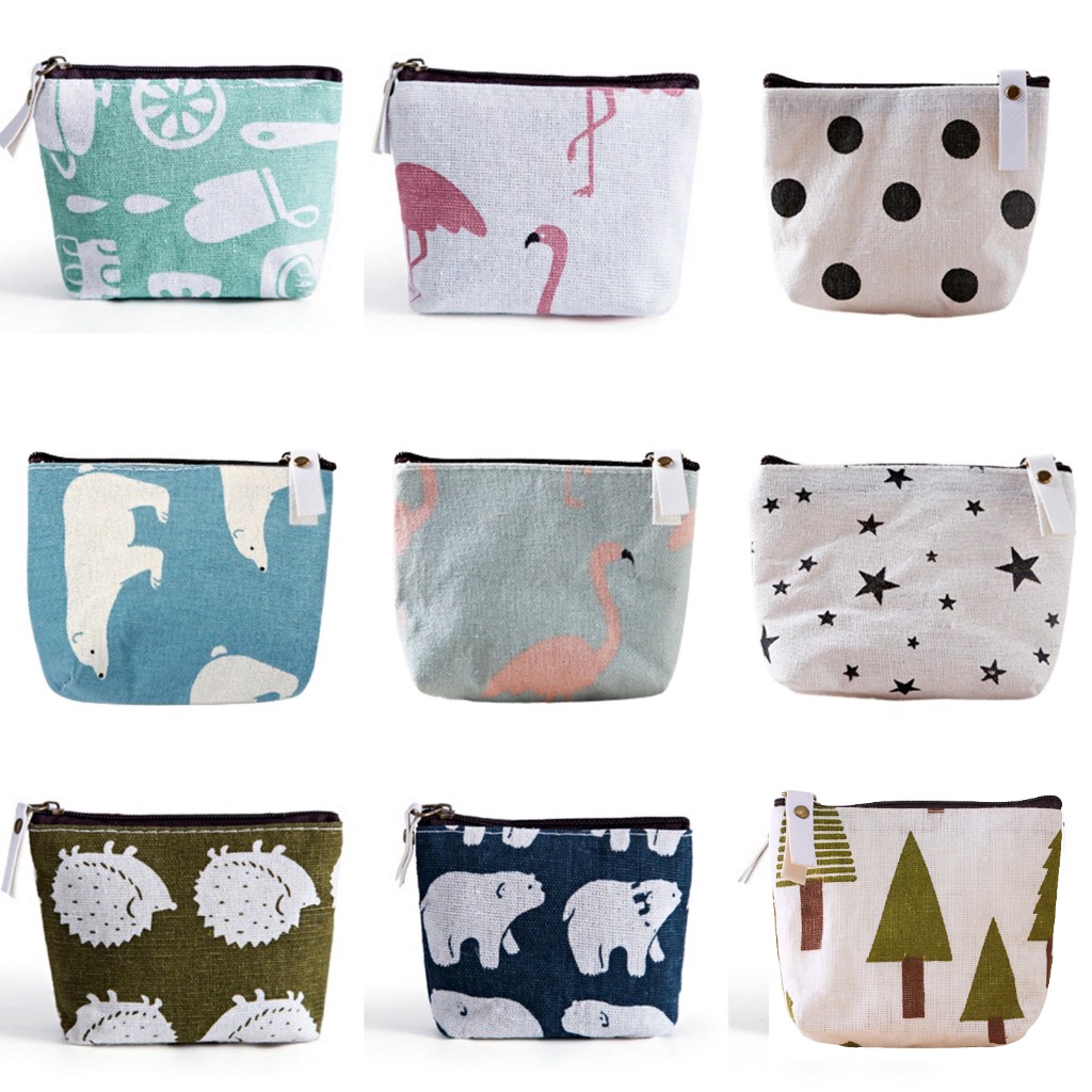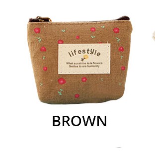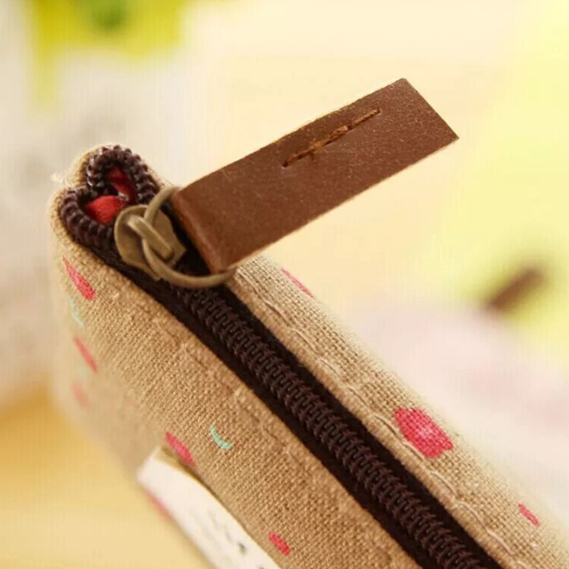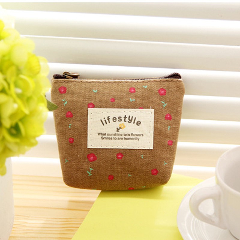 กระเป๋าสตางค์ ผ้าแคนวาส ลายดอกไม้ แบบมีซิป