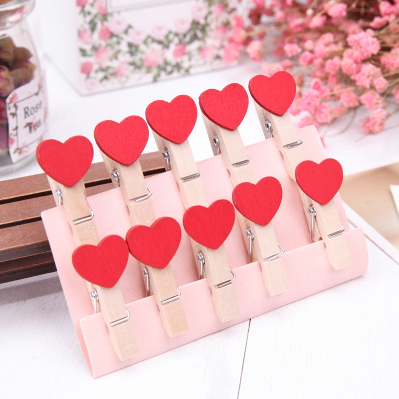 ตัวหนีบ แบบไม้ ลายน่ารัก สำหรับหนีบรูปภาพ 4 สี 10 ชิ้น
