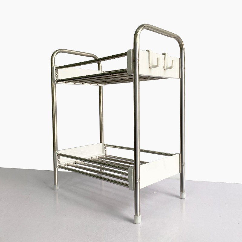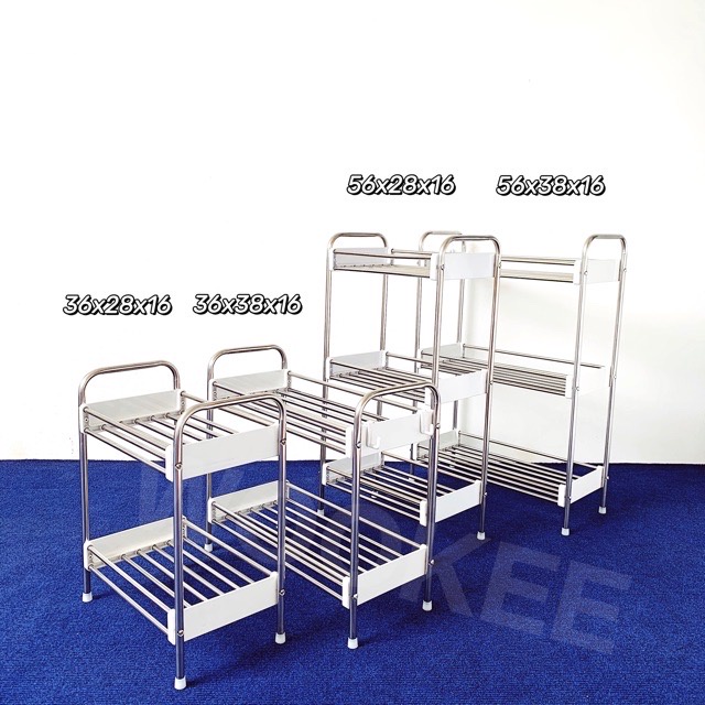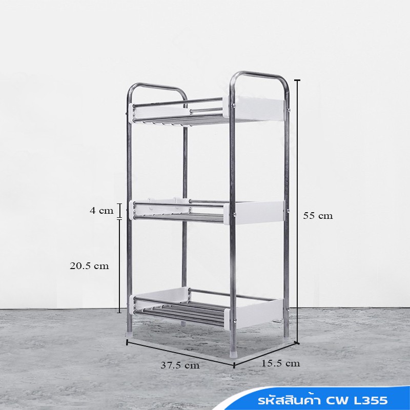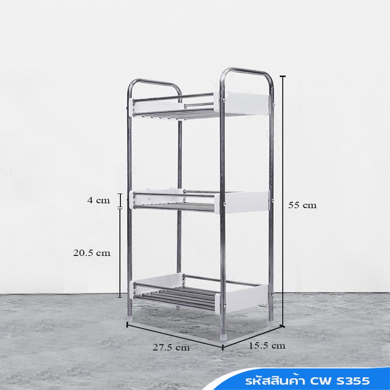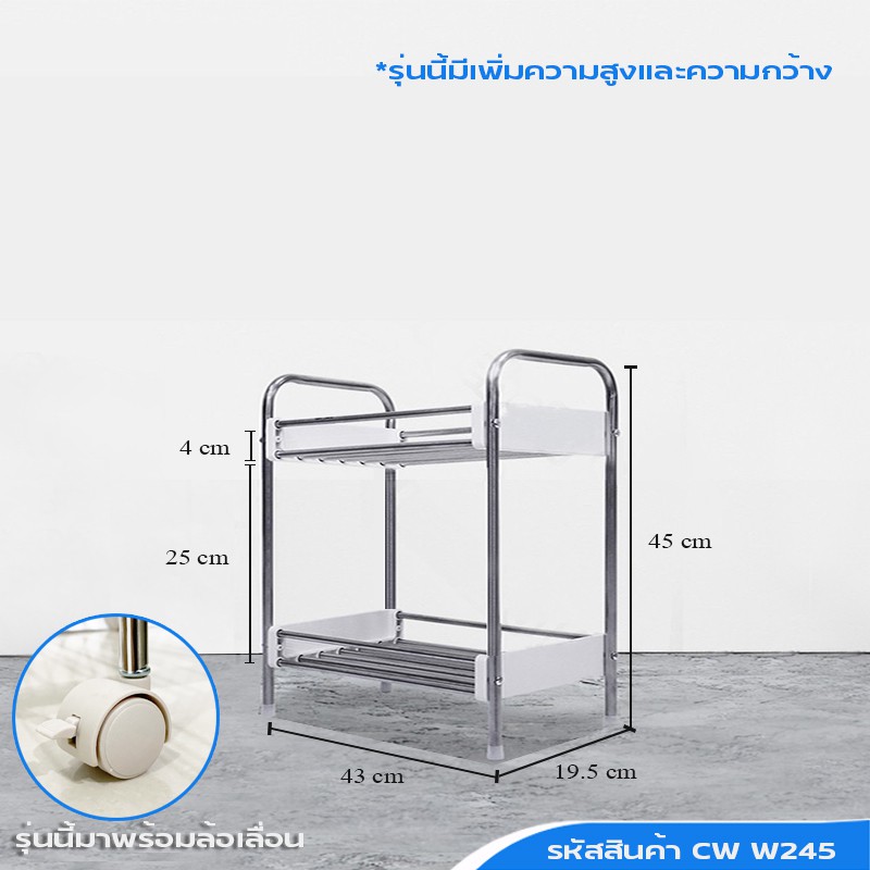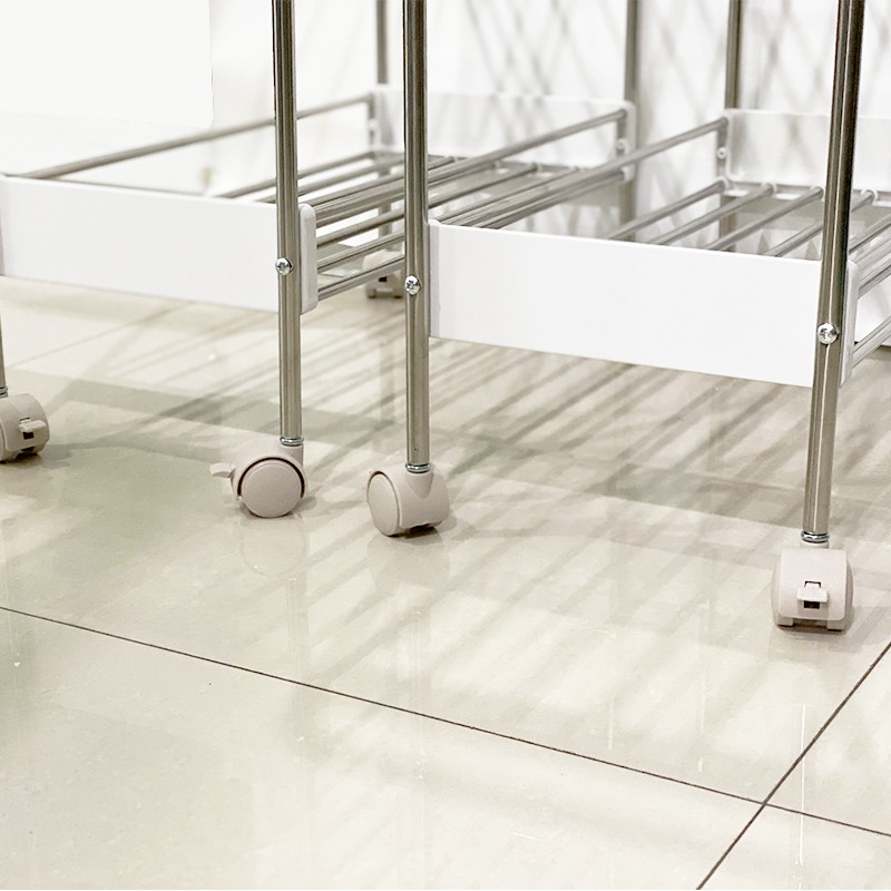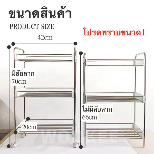 ชั้นวางของสแตนเลสในครัว มีล้อเลื่อน แถมฟรีตะขอ สินค้าพร้อมส่ง